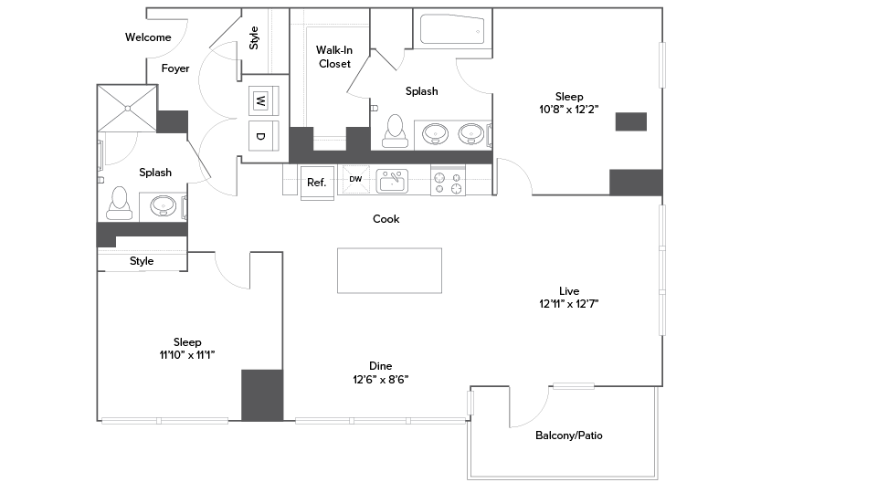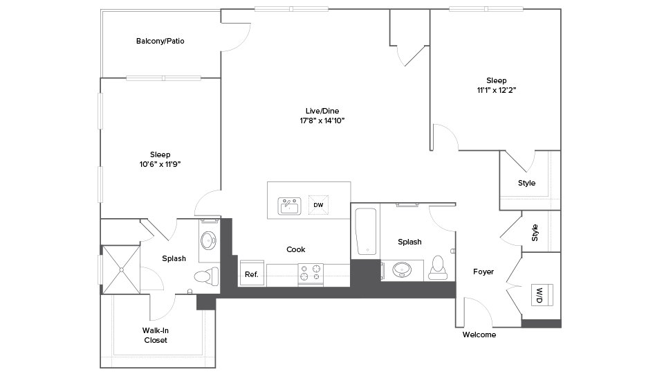 Apartment Model: A15T$2,2351 Bedroom, 1 Bath, 676 sq ftAvailable January 23, 2026![]()