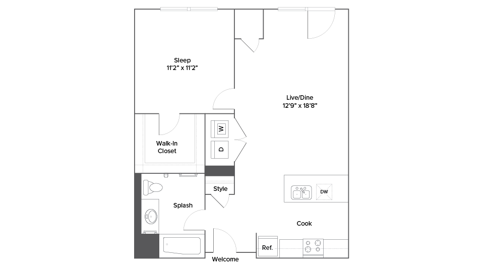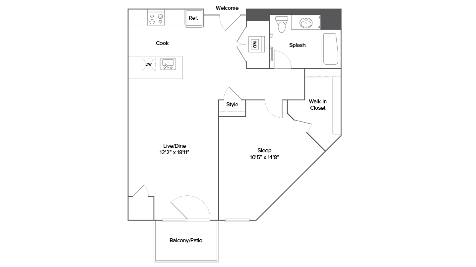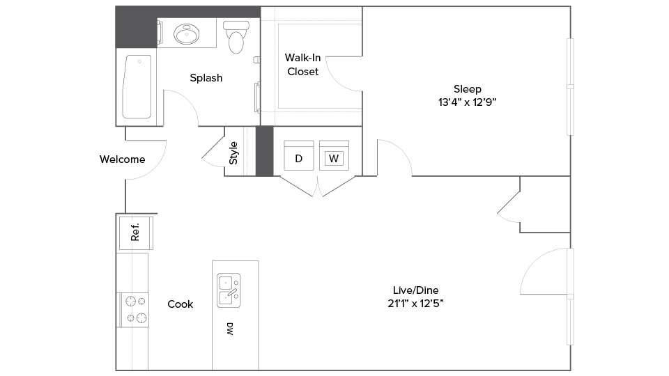 Studio, 1 Bath, 563 sq ftAvailable NowModel Gallery