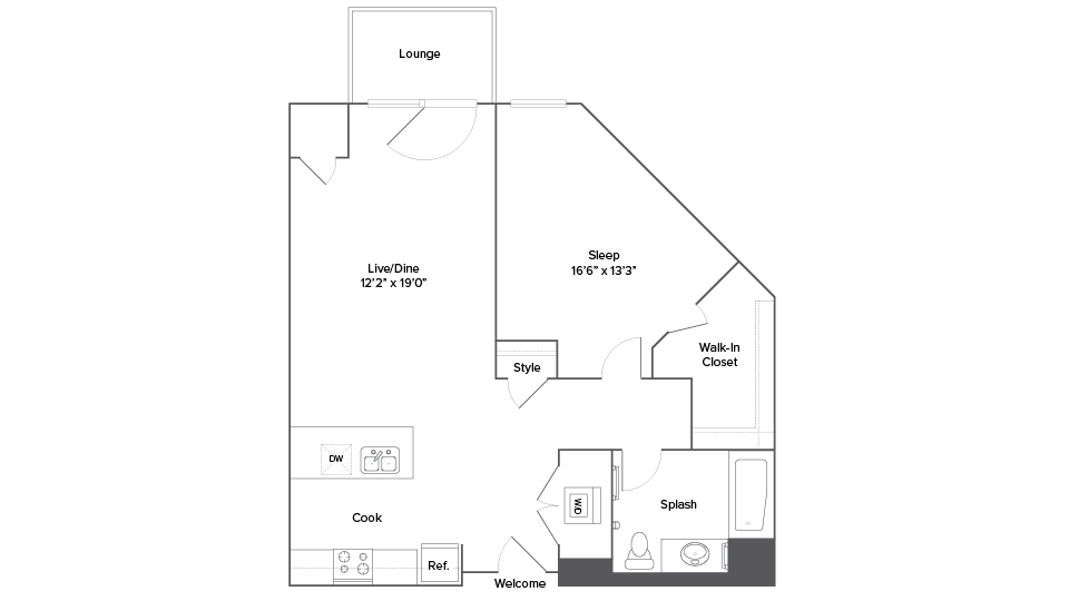 Studio, 1 Bath, 568 sq ftAvailable NowModel Gallery
