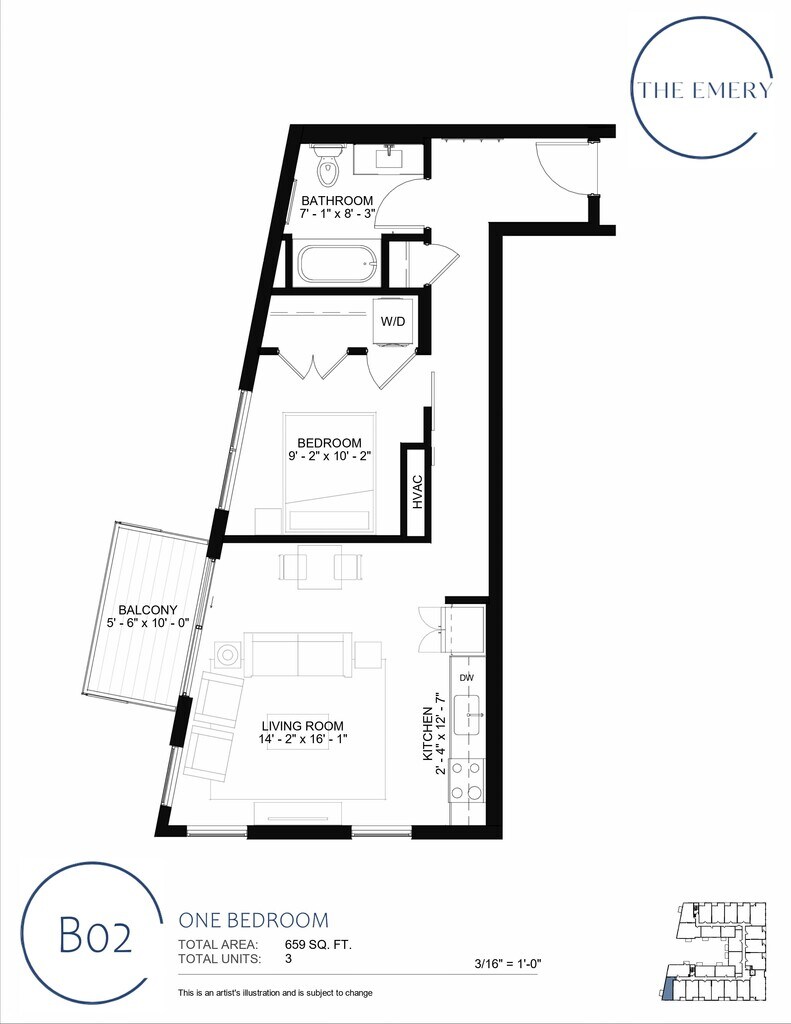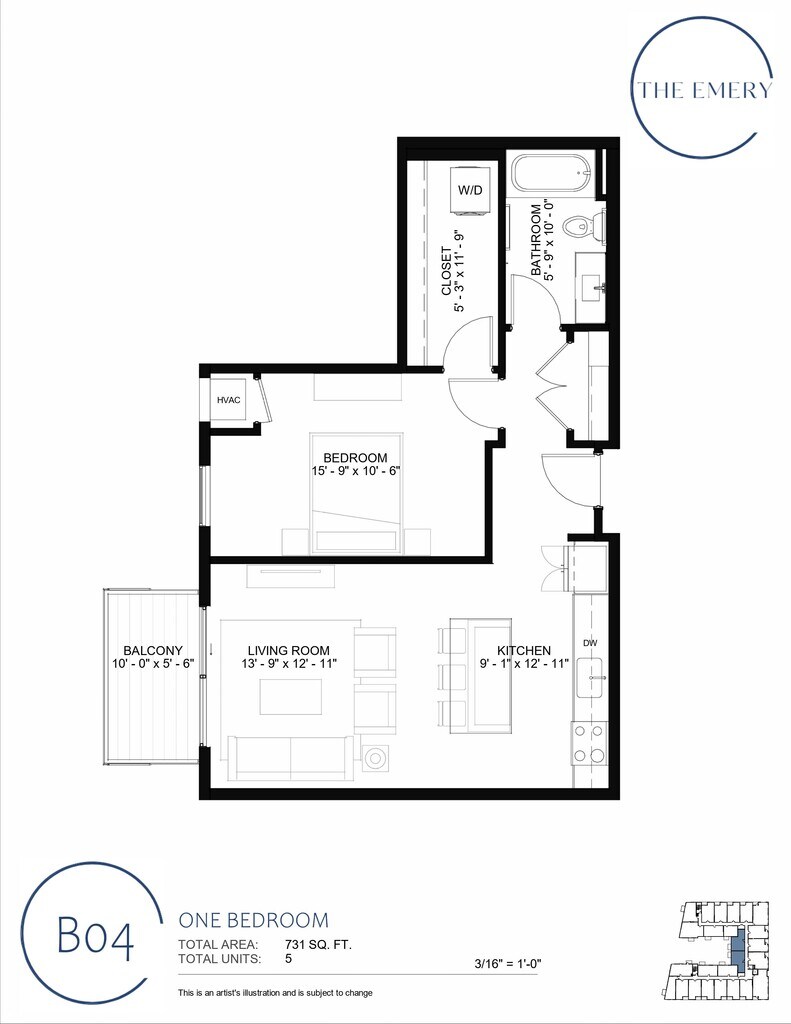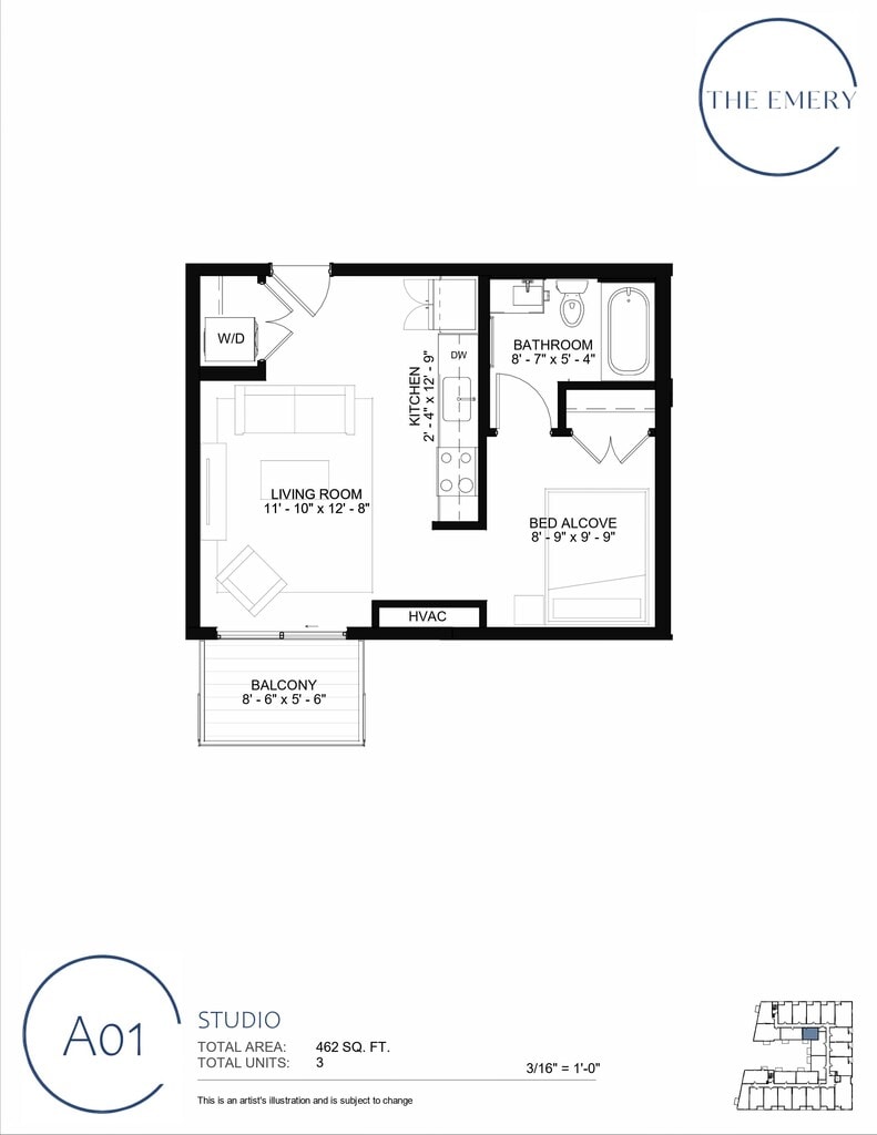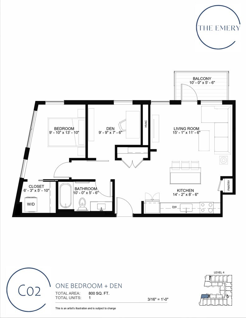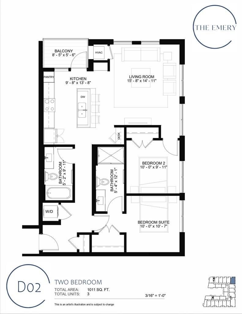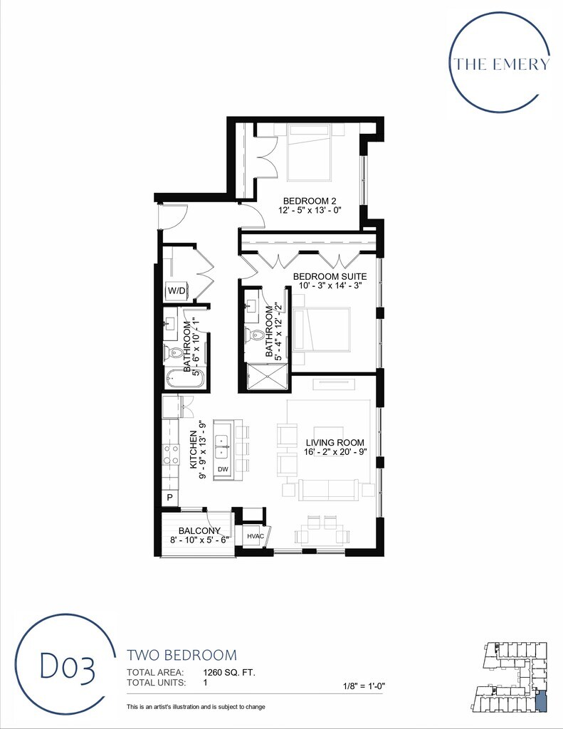 The Emery offers Studio to 2 Bedroom apartments starting from $1,500 and having 462–1,260 sq ft. Here is the current pricing and availability: