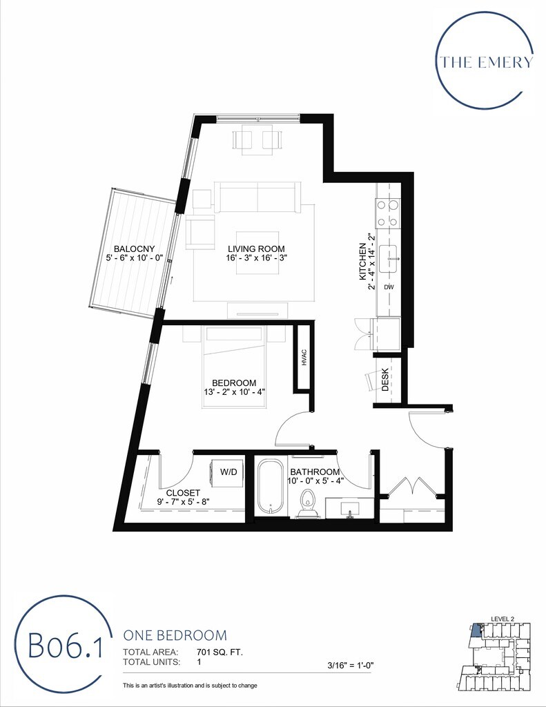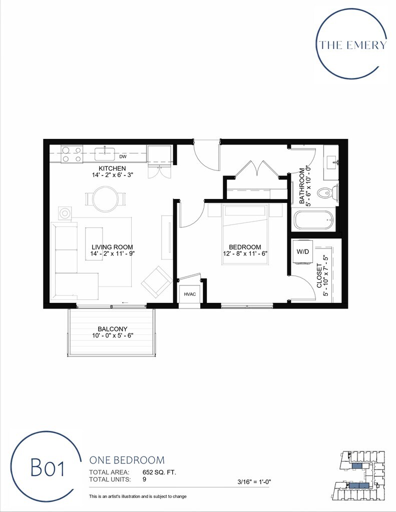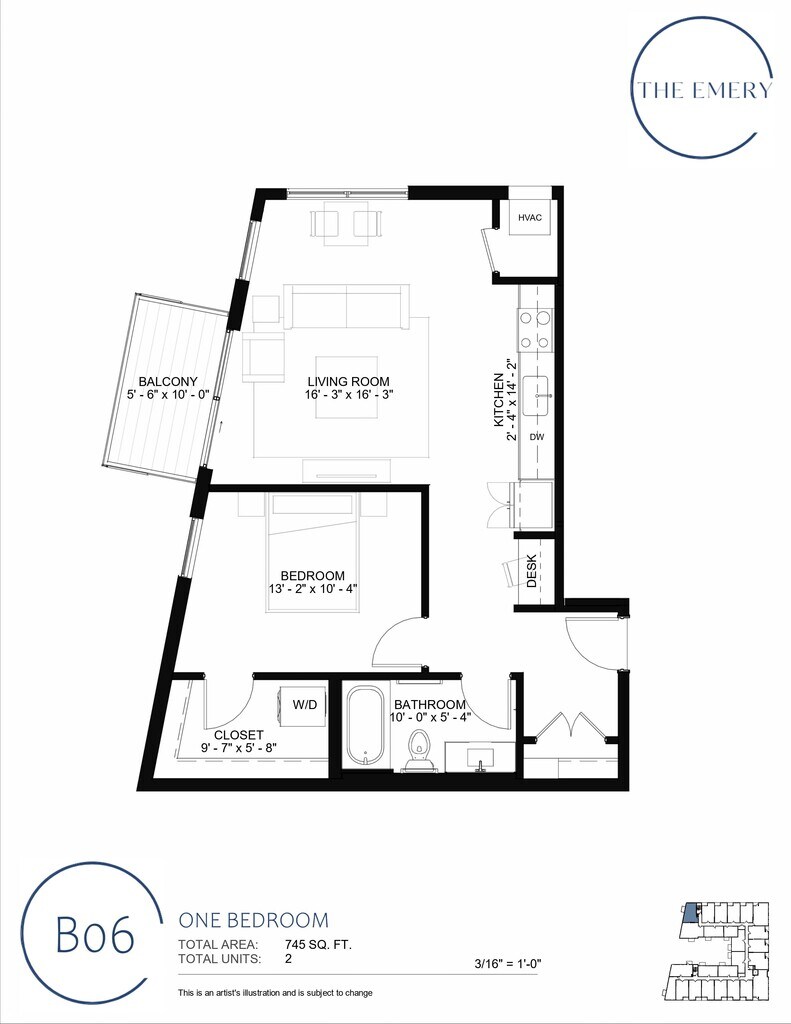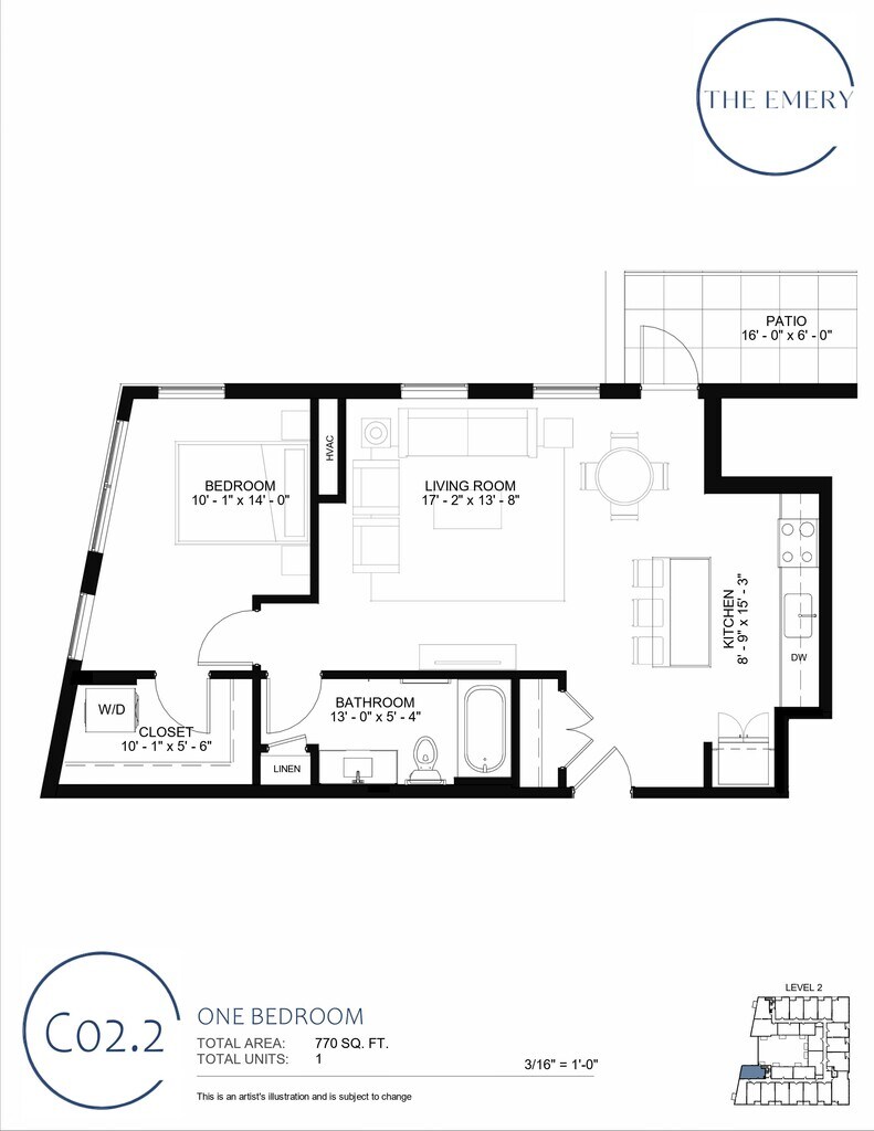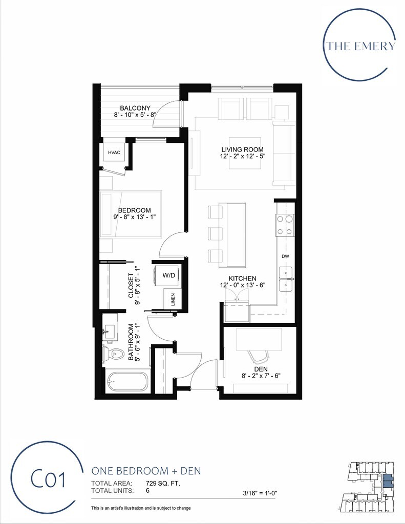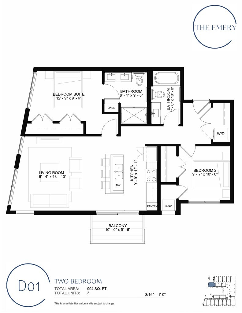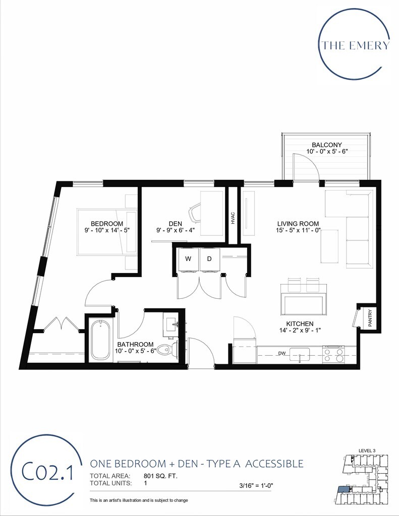 The Emery offers Studio to 2 Bedroom apartments starting from $1,500 and having 462–1,260 sq ft. Here is the current pricing and availability: