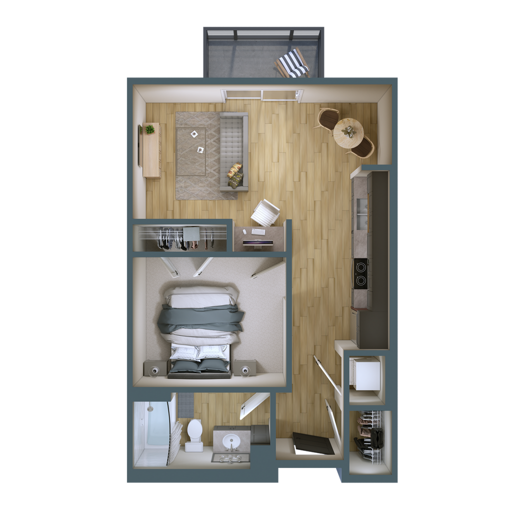 Studio, 1 Bath, 476 sq ftPlus FeesAvailable Dec 1Model Gallery