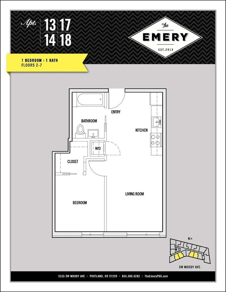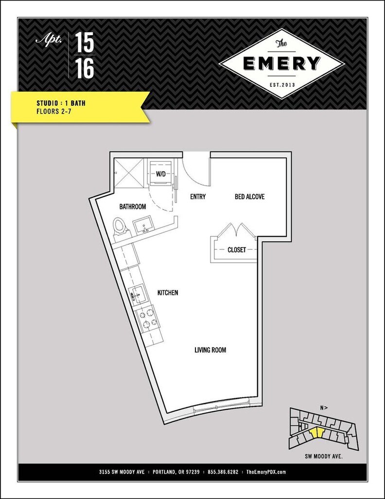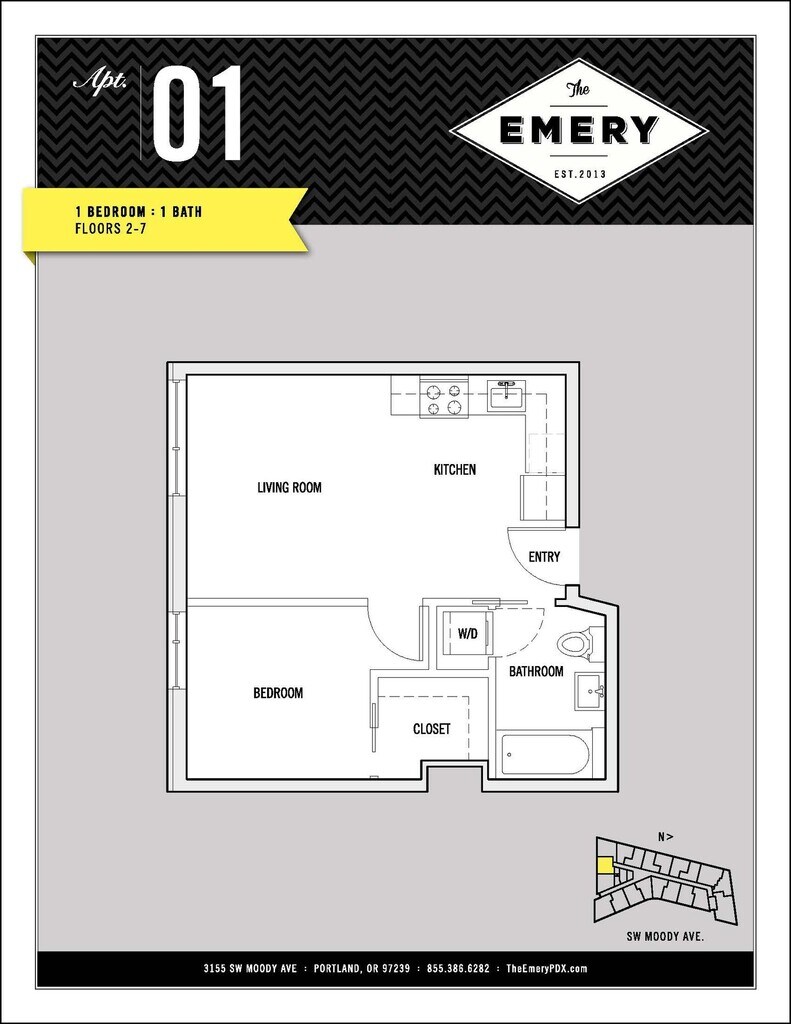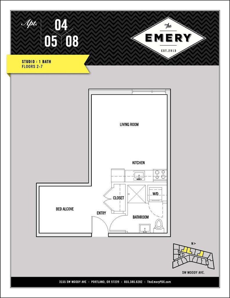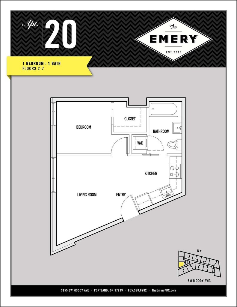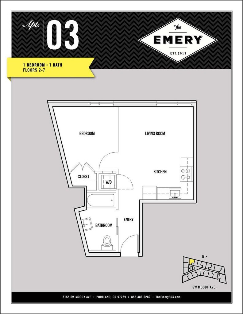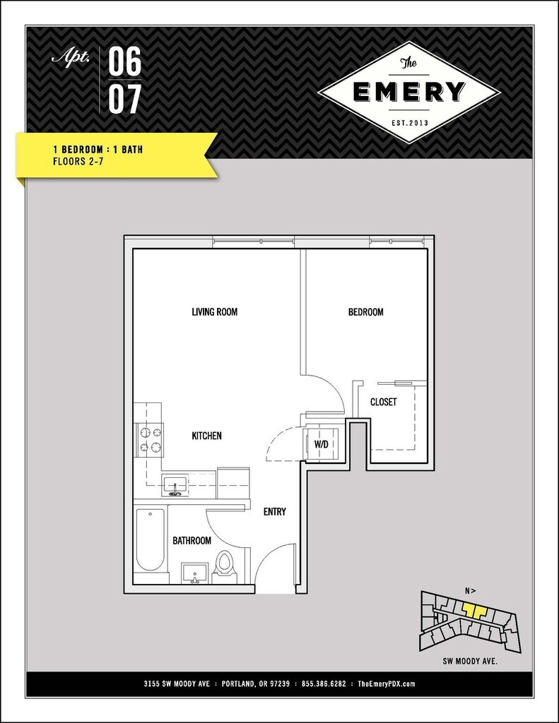 The Emery is located at 3155 S Moody Ave near the South Waterfront area of Portland, OR
