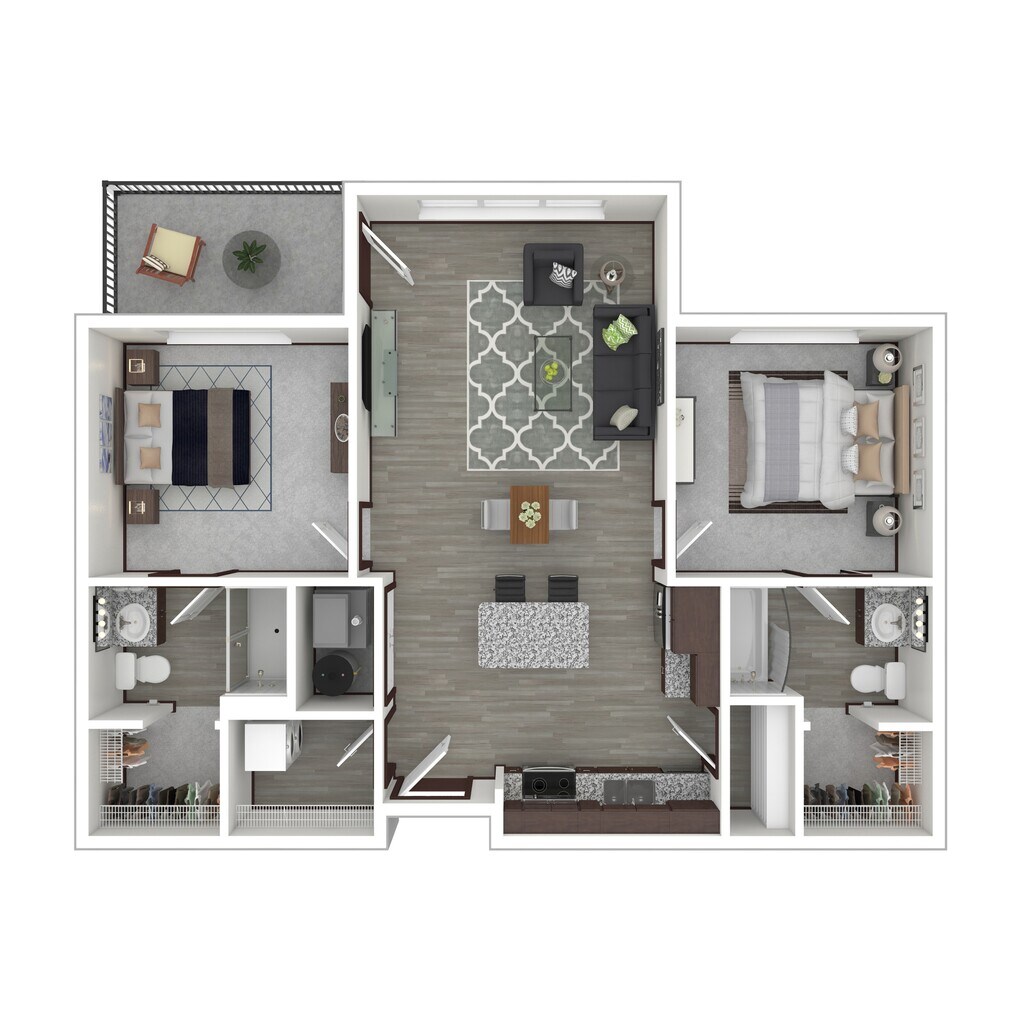 2 Beds, 2 Baths, 1019 sq ftAvailable NowModel Gallery
