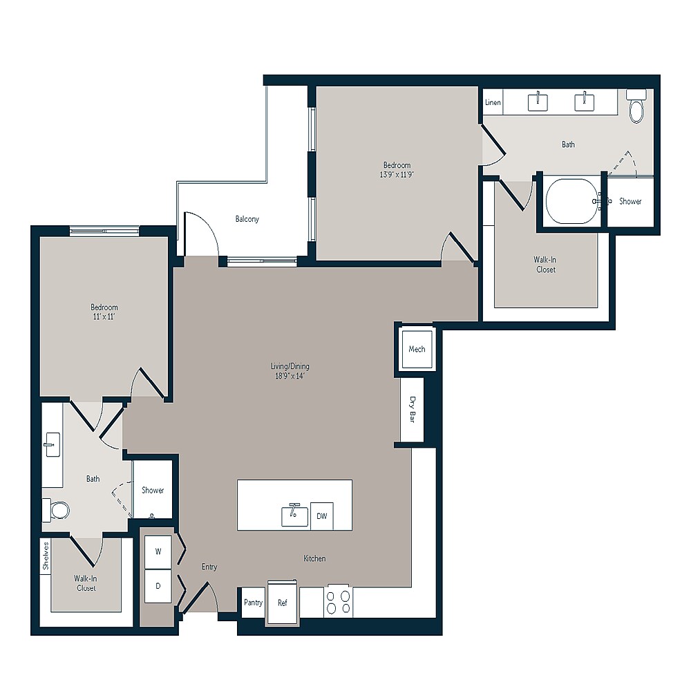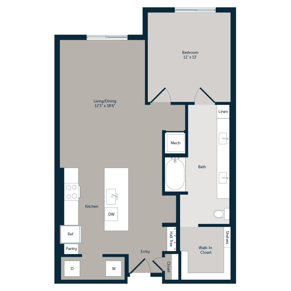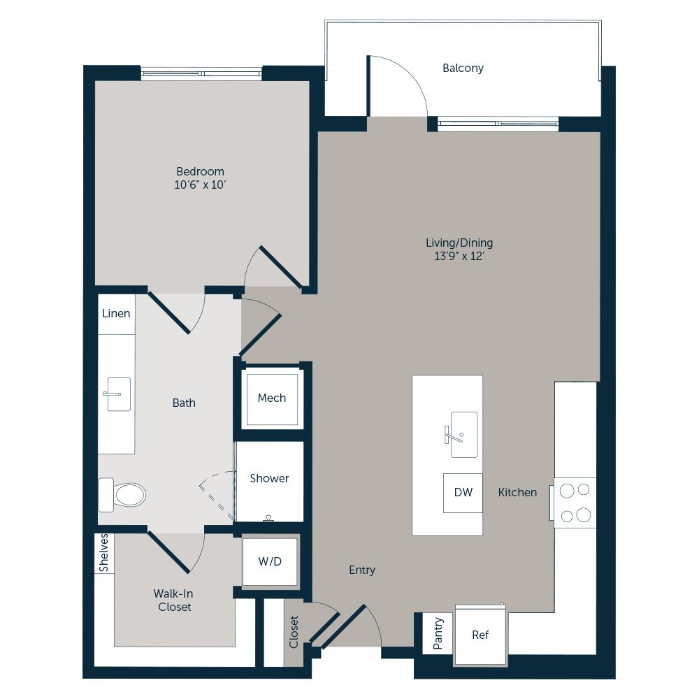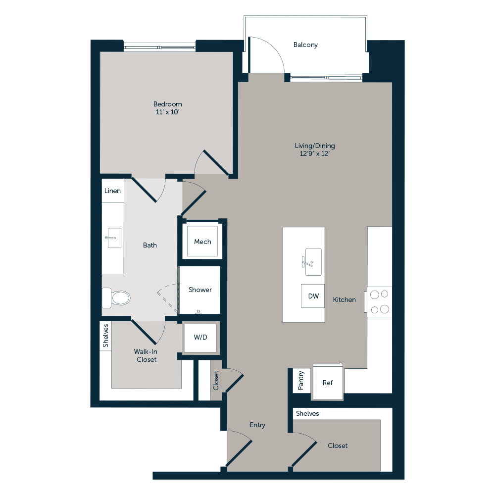 1 Bed, 1 Bath, 637 sq ftAvailable NowModel Gallery