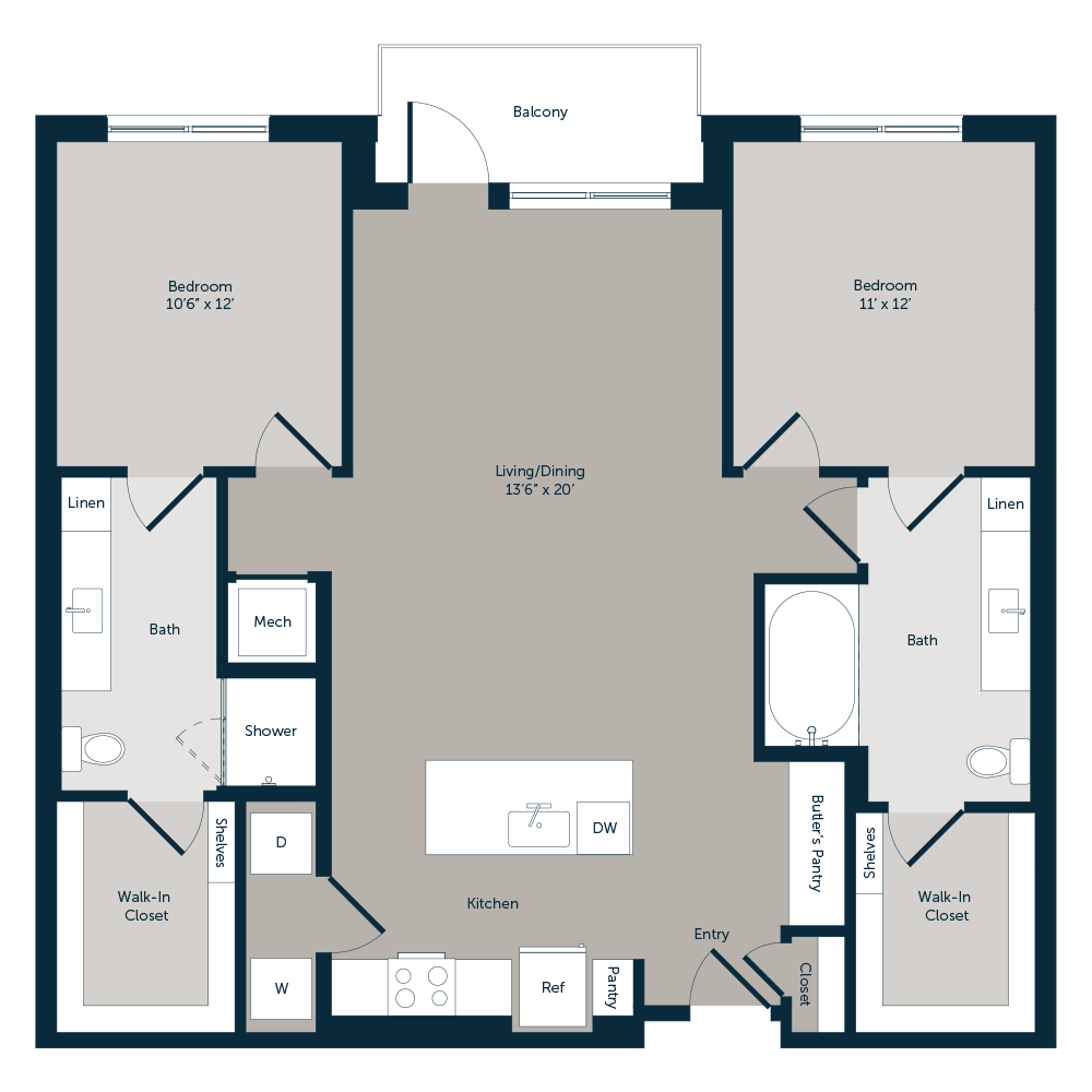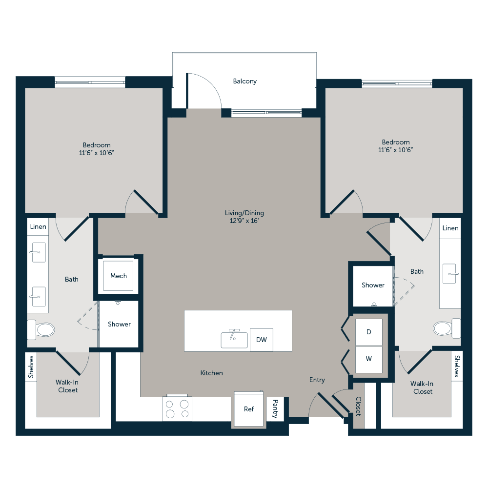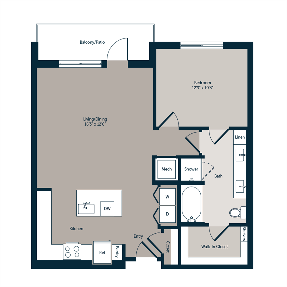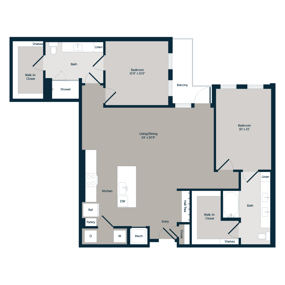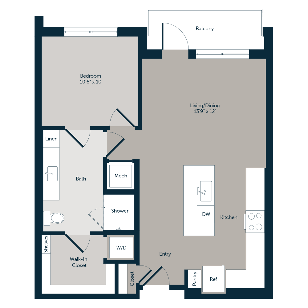 1 Bed, 1 Bath, 637 sq ftAvailable NowModel Gallery