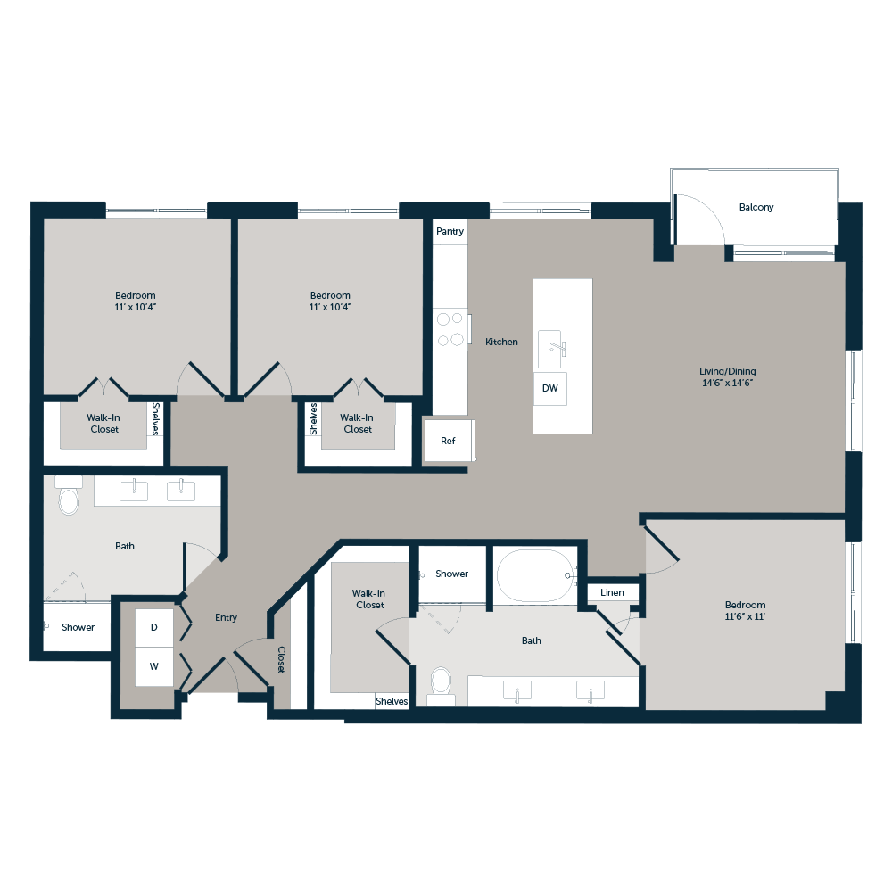 The Emory offers 1 to 3 Bedroom apartments starting from $1,390 and having 565–1,412 sq ft. Here is the current pricing and availability: