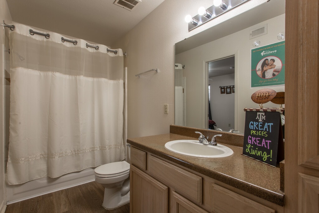 The Enclave is the best alternative to on-campus living at Texas A&M in College Station, Texas. The Enclave offers full-size GE kitchen appliances and a washer and dryer in every one of our spacious apartment homes. With other amenities such as a state of the art fitness center, tanning beds, and resort style pool, you'll be living in luxury at the Enclave Apartments. Study, play, sleep and repeat; life as a student doesn't get much better. Not only are you 10 minutes from campus, but you can hop directly on the TAMU bus shuttle when it comes time for class.