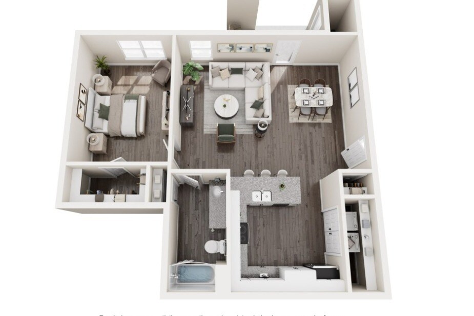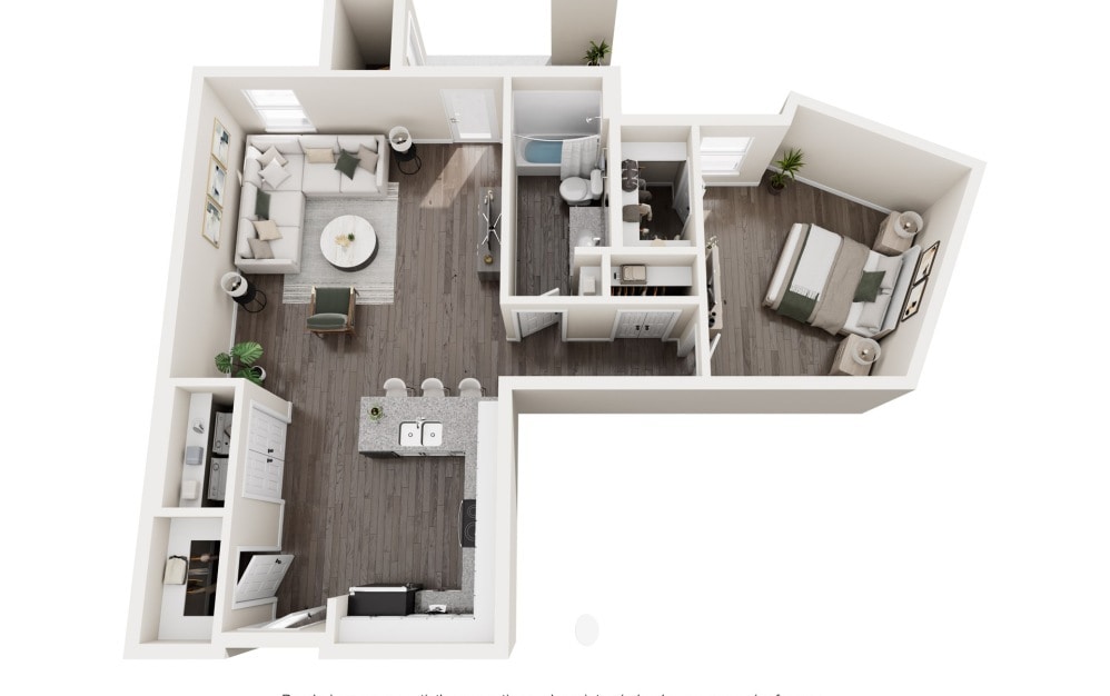 1BR-D - Floorplan 1 Floor plans are artist's rendering. All dimensions are approximate. Actual product and specifications may vary in dimension or detail. Not all features are available in every rental home. Please see a representative for details.