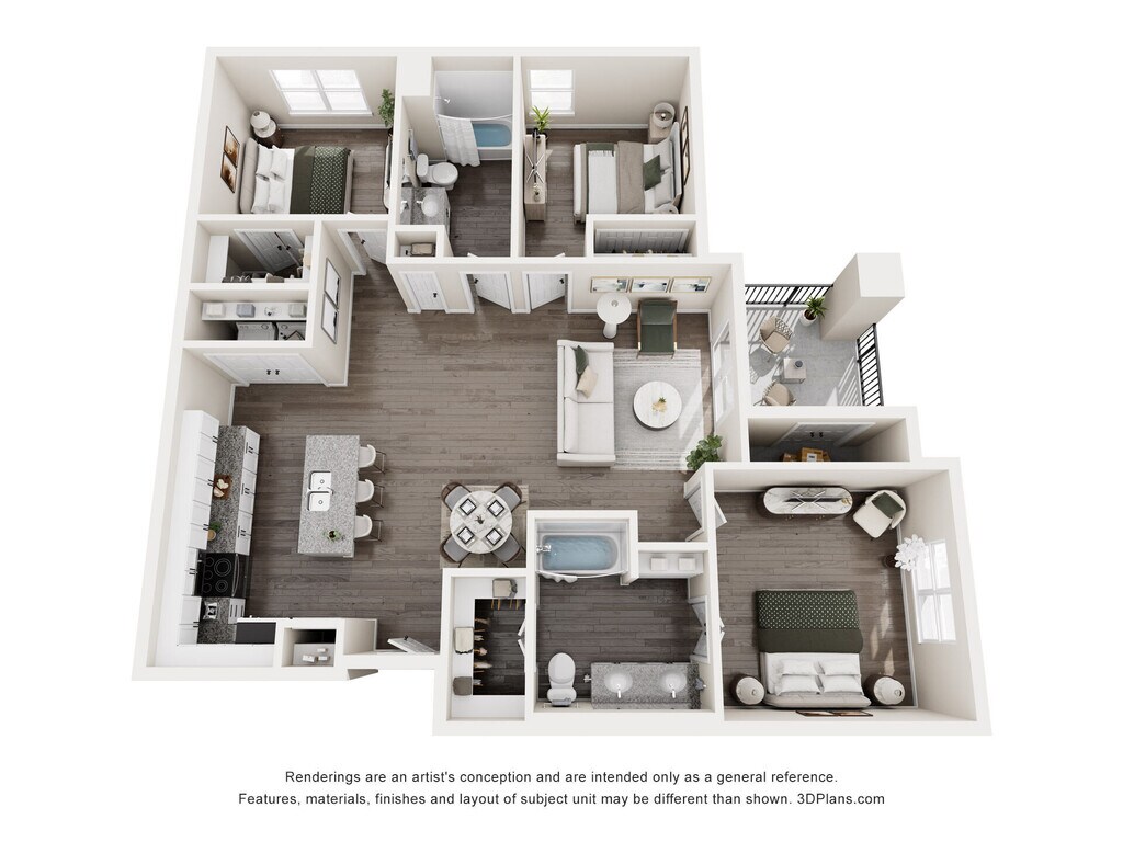 1BR-C - Floorplan 1 Floor plans are artist's rendering. All dimensions are approximate. Actual product and specifications may vary in dimension or detail. Not all features are available in every rental home. Please see a representative for details.