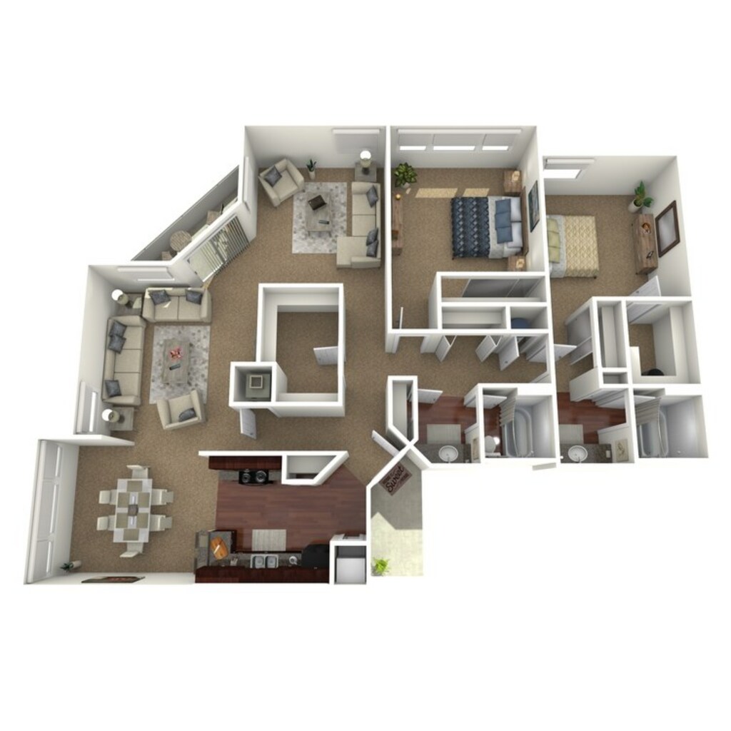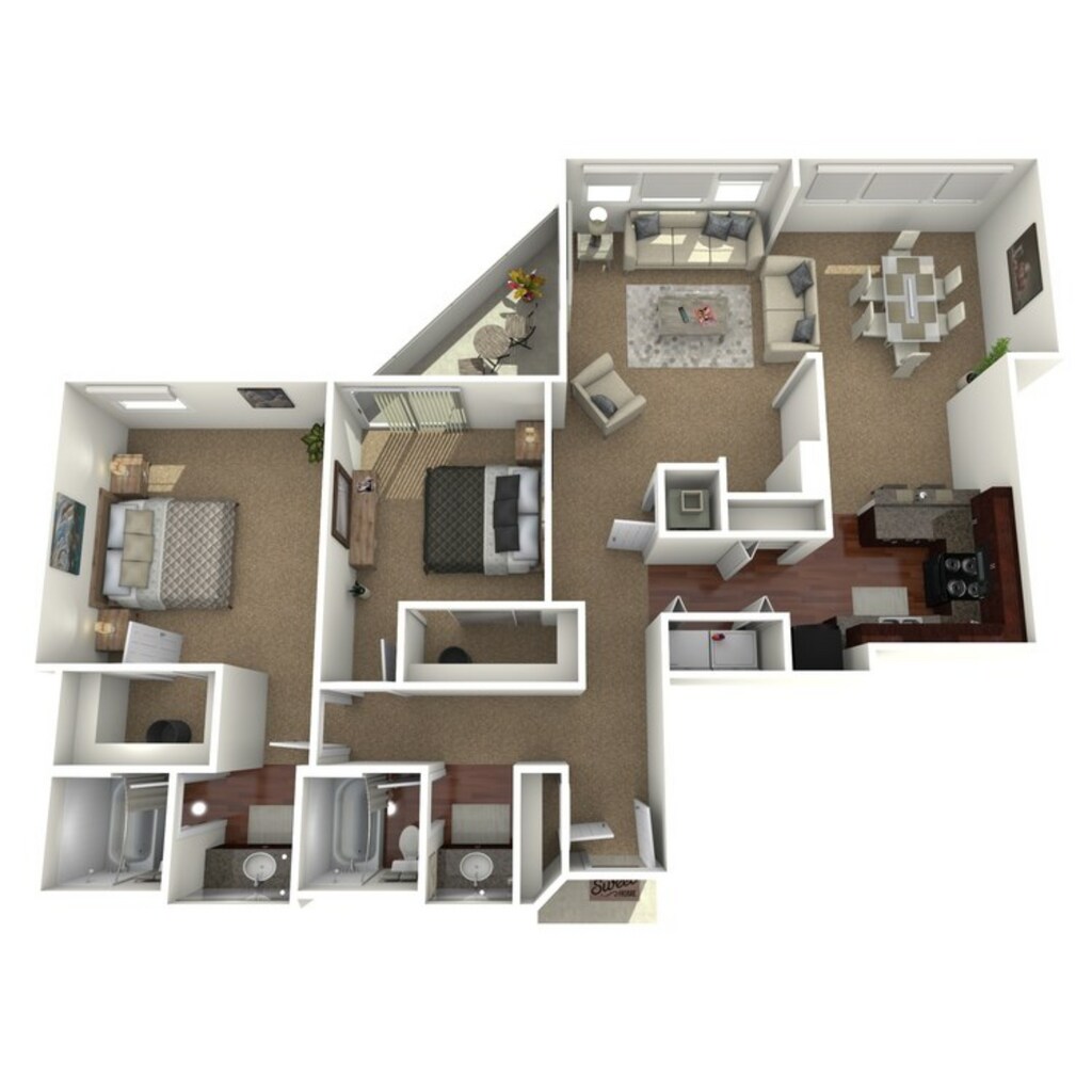2 Beds, 2 Baths, 1541 sq ftAvailable Dec 12Largest 2 BedroomThis is the largest 2 Bedroom at this PropertyModel Gallery