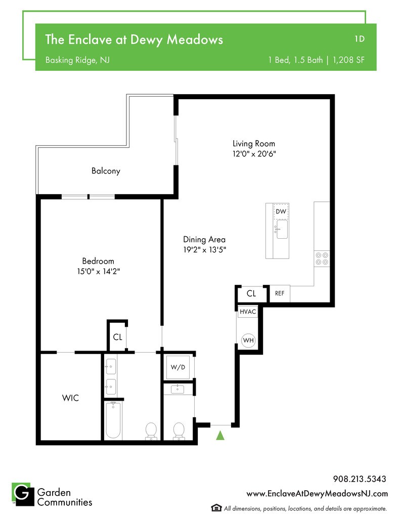 1 Bed, 1.5 Baths, 1208 sq ftLargest 1 BedroomThis is the largest 1 Bedroom at this PropertyModel Gallery