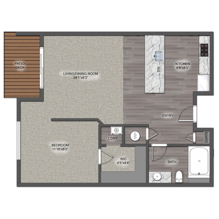 1 Bed, 1 Bath, 752 sq ftModel Gallery