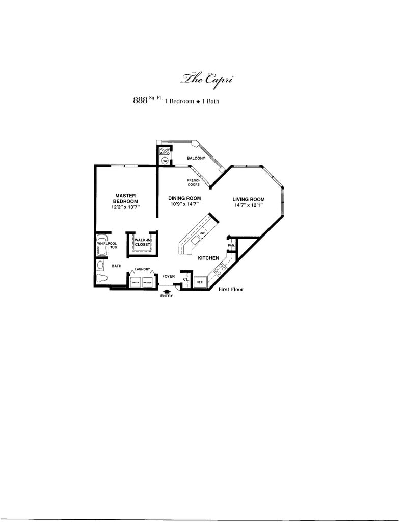 Apartment Model: $3.60/sq.ft. - Capri$3,3001 Bedroom, 1 Bath, 890 sq ftAvailable December 31, 2025![]()