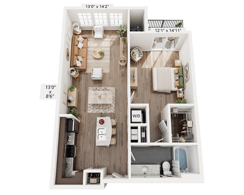 Apartment Model: One Bedroom A1BFrom $1,9671 Bedroom, 1 Bath, 811 sq ftAvailable Now![]()