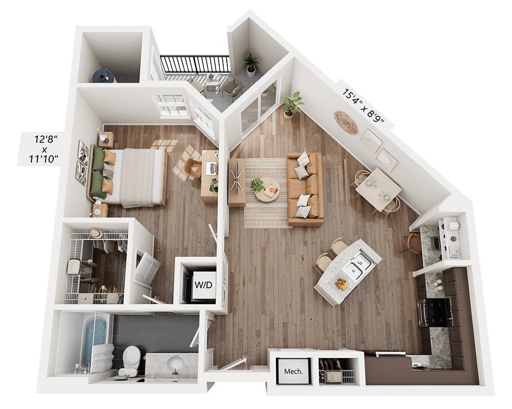One Bedroom A1B - Floorplan 1 Apartment Unit: 1-101Apartment Model: One Bedroom A1B$2,0271 Bedroom, 1 Bath, 811 sq ftAvailable NowFloorplansPhotos![]()