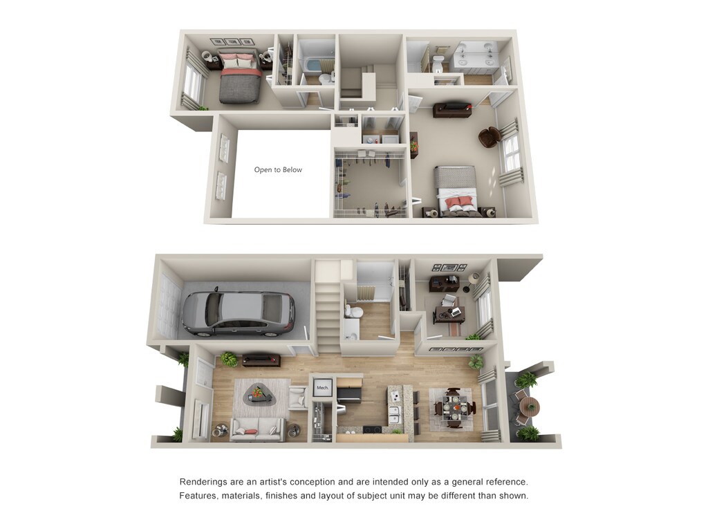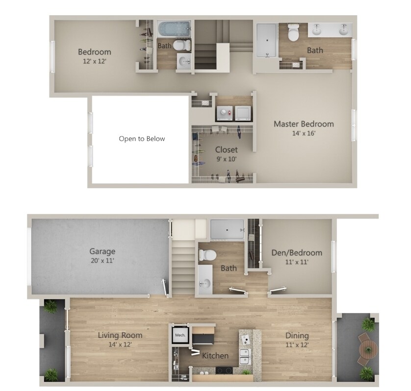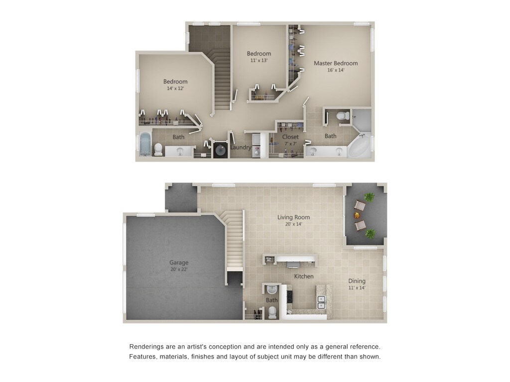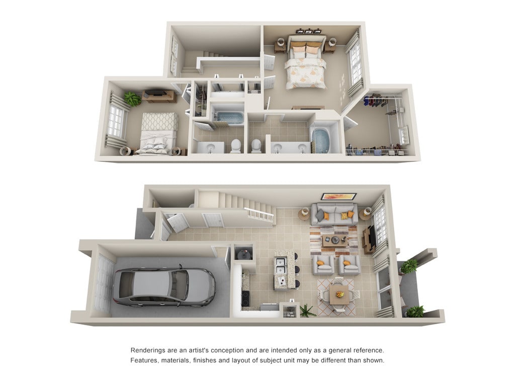 2 Beds, 2.5 Baths, 1314 sq ftModel Gallery