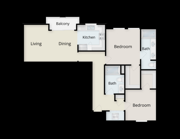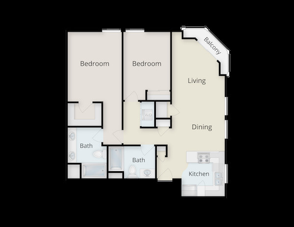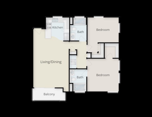2 Beds, 2 Baths, 1168 sq ftLargest 2 BedroomThis is the largest 2 Bedroom at this PropertyModel Gallery