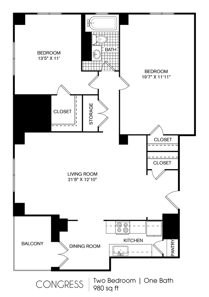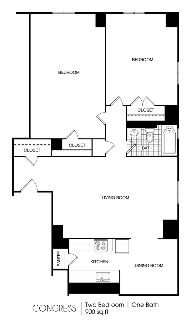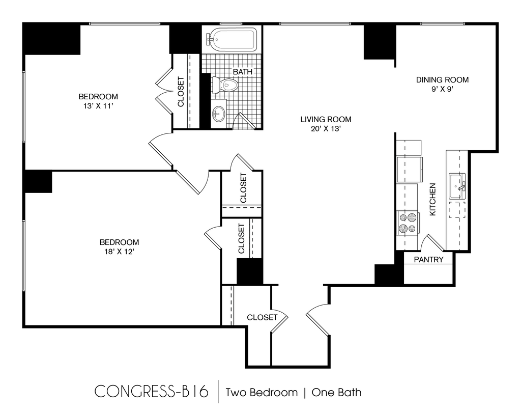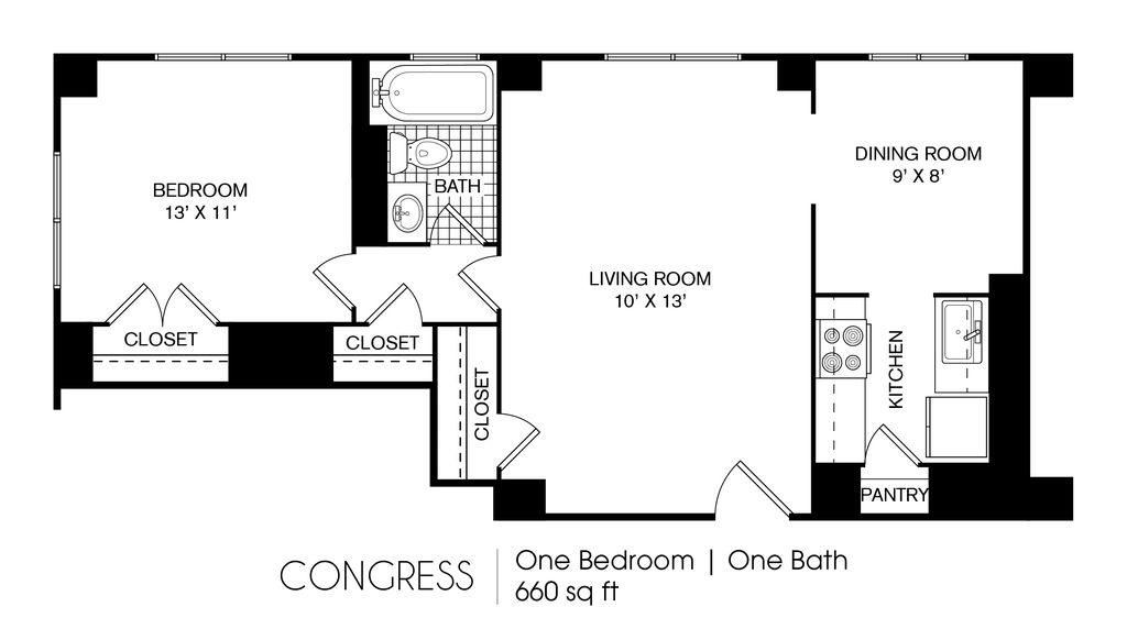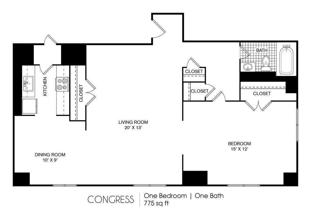 Apartment Model: Congress Studio 300From $839Studio, 1 Bath, 300 sq ftAvailable Now![]()