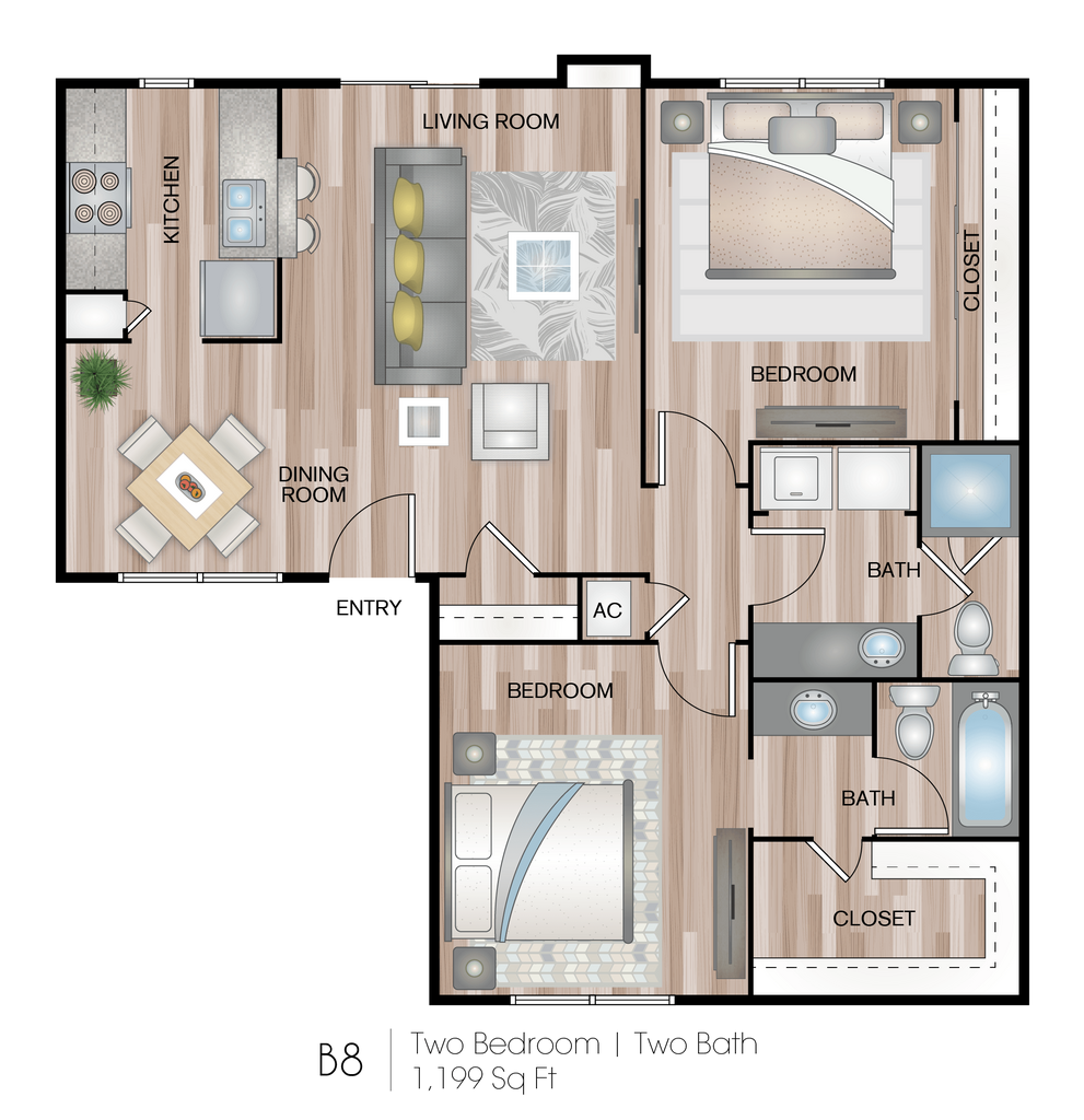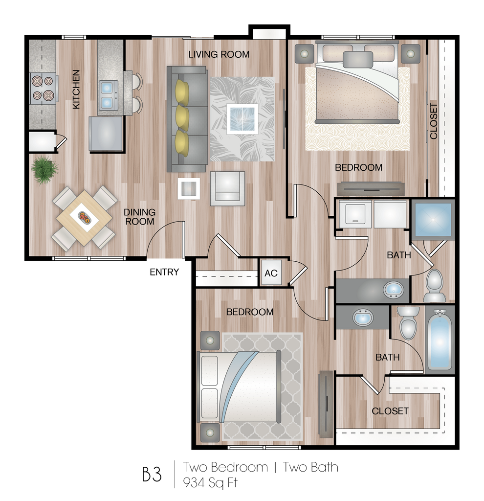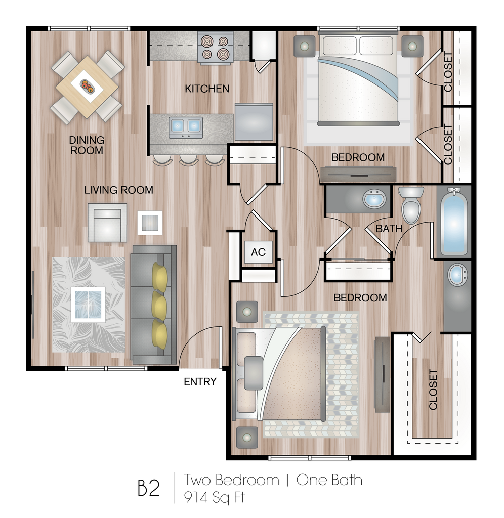 1 Bed, 1 Bath, 876 sq ftAvailable NowModel Gallery