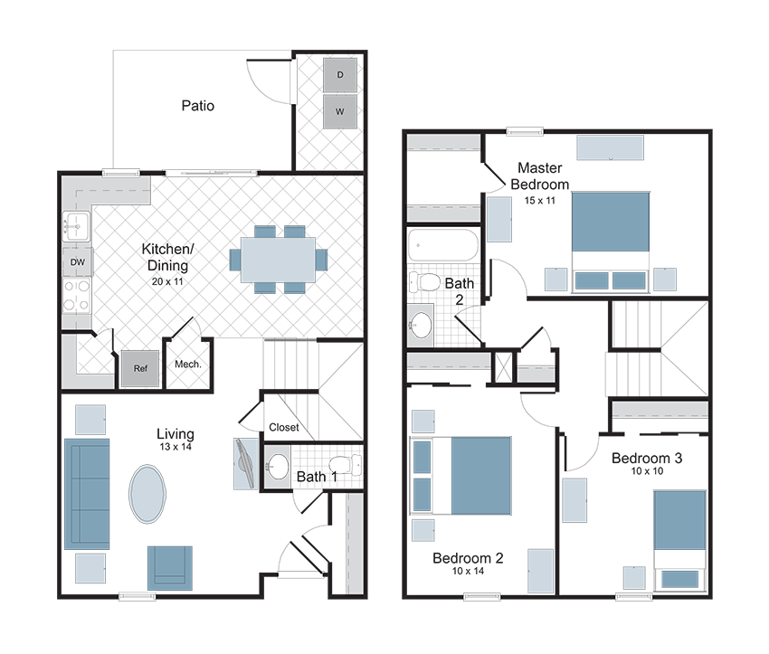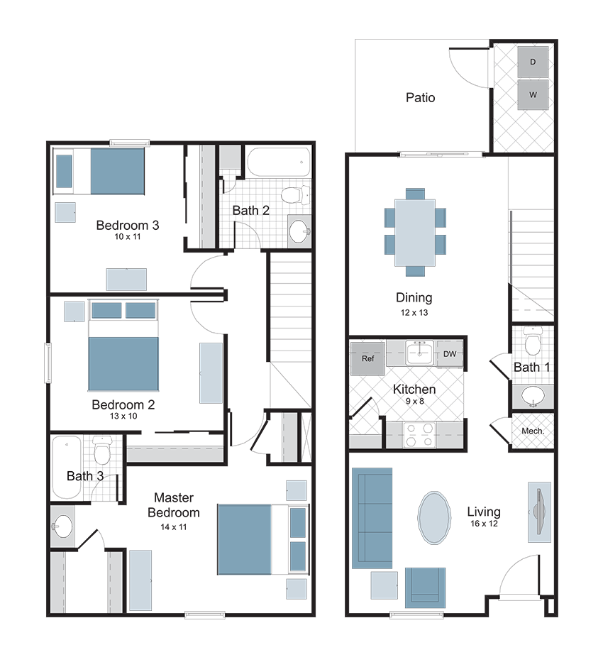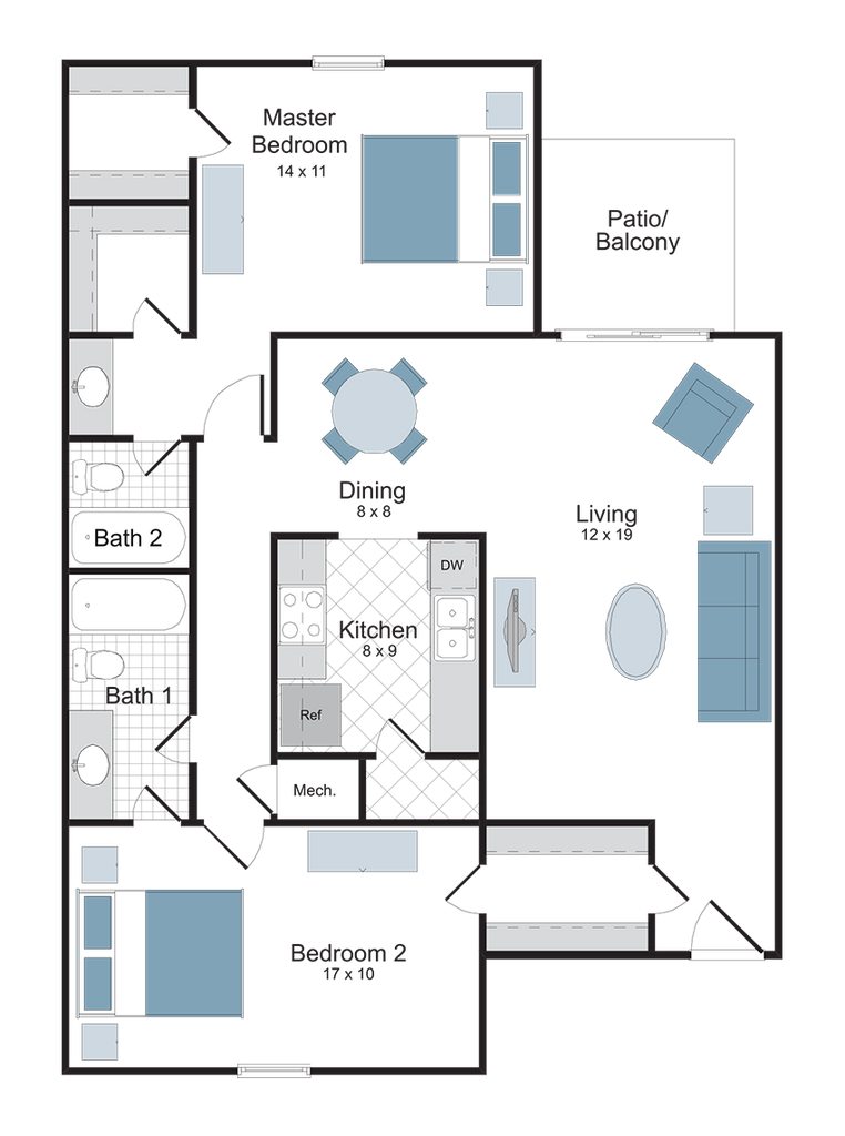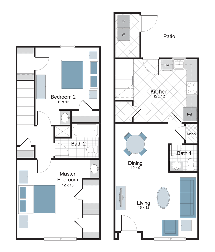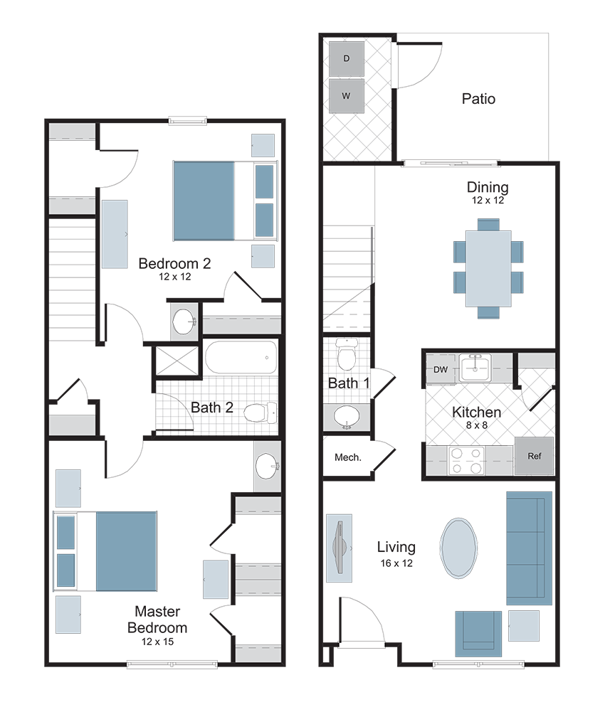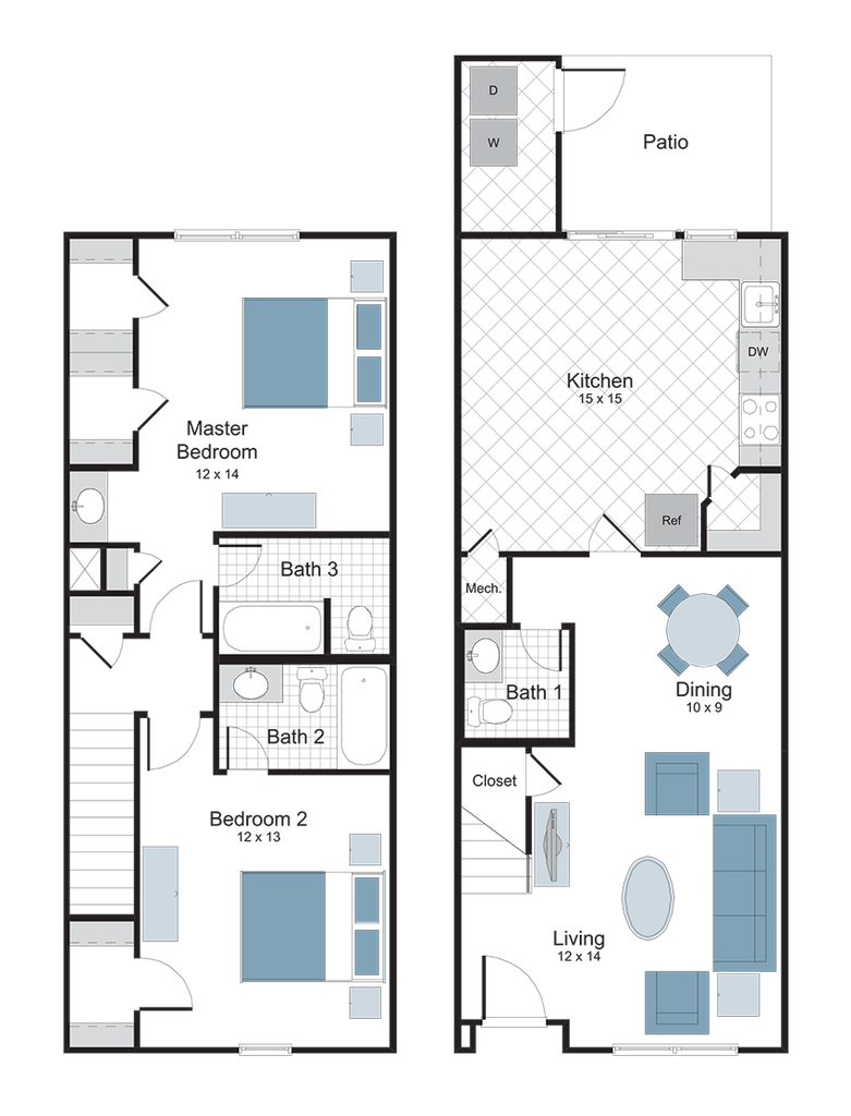 1 Bed, 1 Bath, 800-920 sq ftAvailable NowModel Gallery