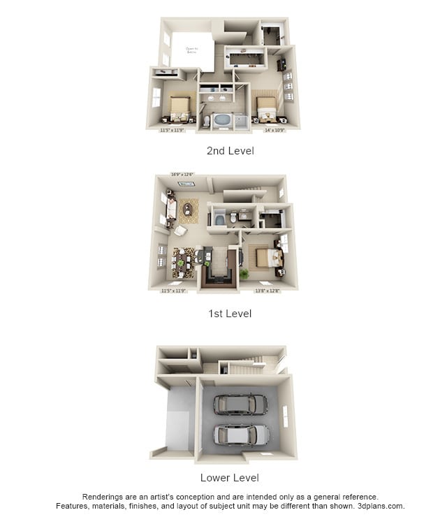 2 Beds, 2.5 Baths, 1605 sq ftModel Gallery