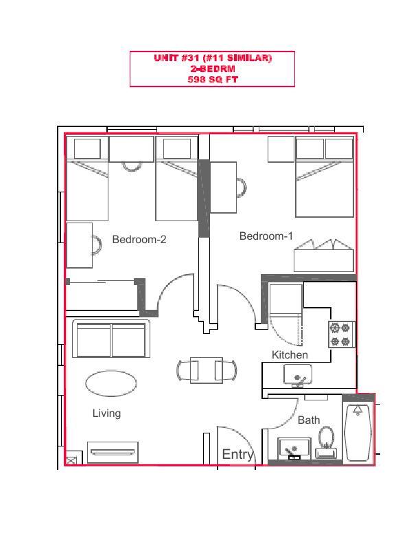 2 Beds, 1 Baths - Image 10 Apartment Unit: 31Apartment Model: 2 Beds, 1 Baths2 Bedroom, 1 Bath, 598 sq ftAvailable June 8, 20262 Beds, 1 Baths