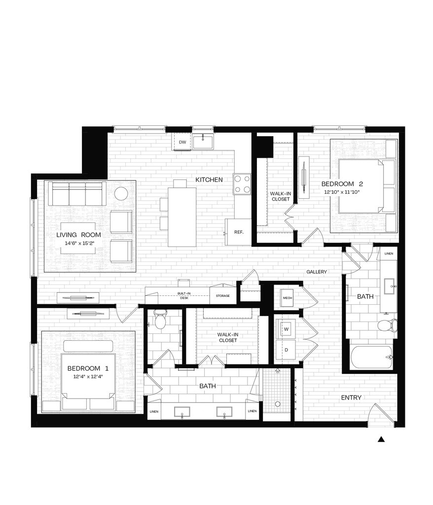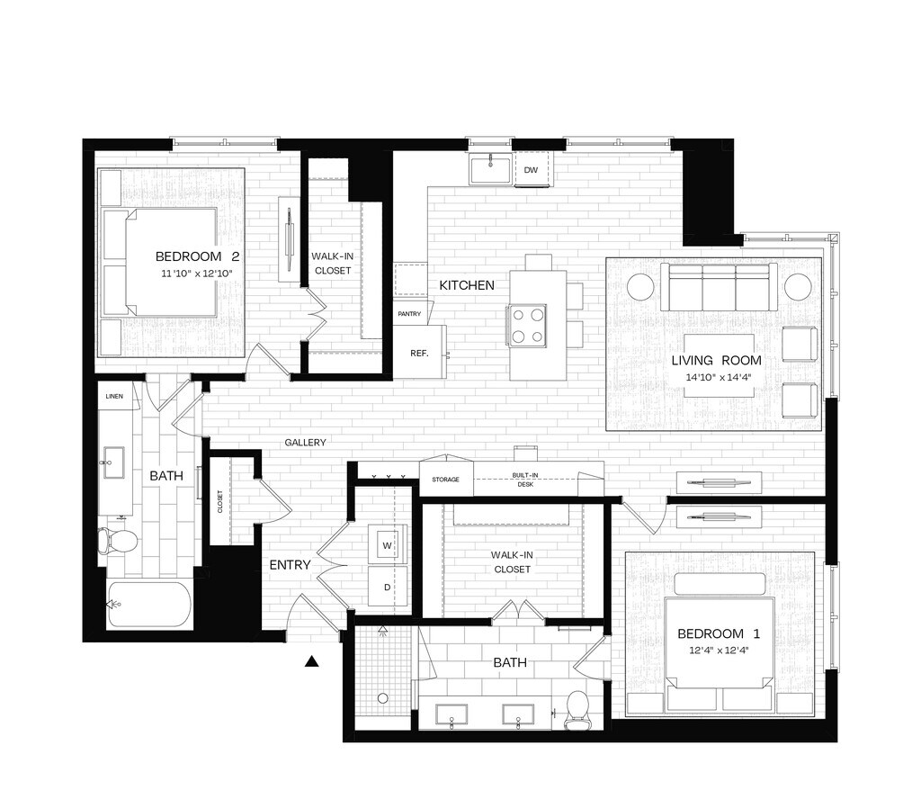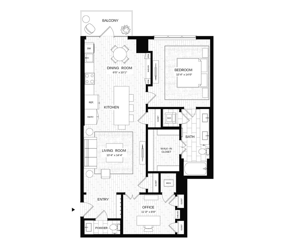1 Bed, 1 Bath, 696-732 sq ftAvailable NowModel Gallery