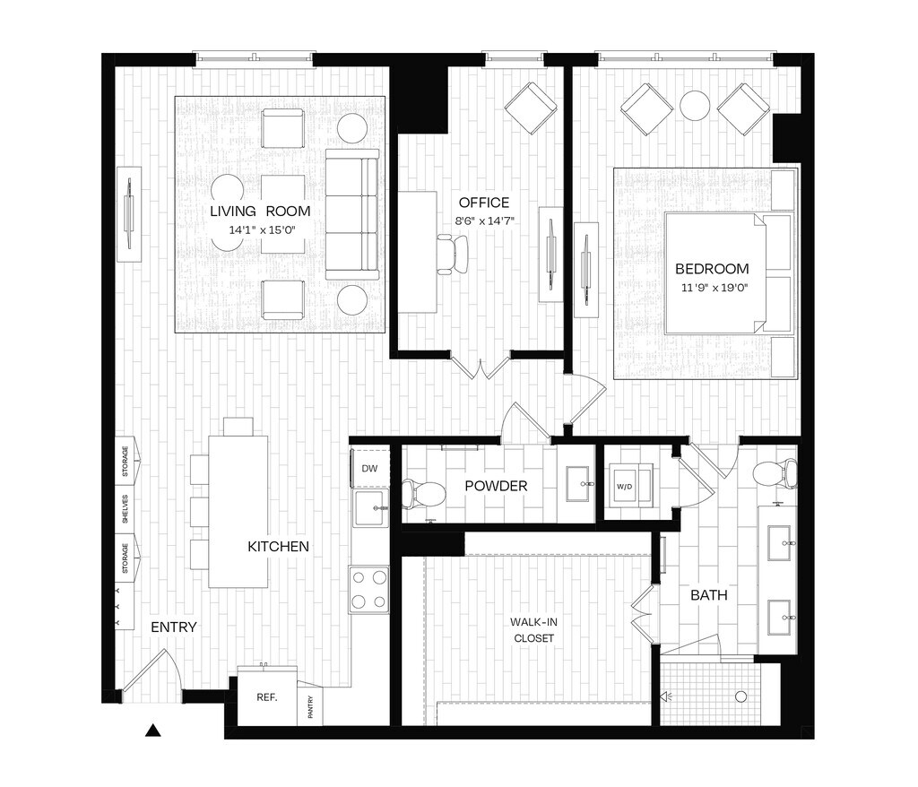 1 Bed, 1 Bath, 708-721 sq ftAvailable NowModel Gallery