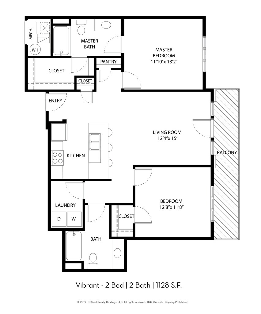 Apartment Model: The Vibrant 2x22 Bedroom, 2 Bath, 1128 sq ftAvailable NowFloorplansPhotos![]()