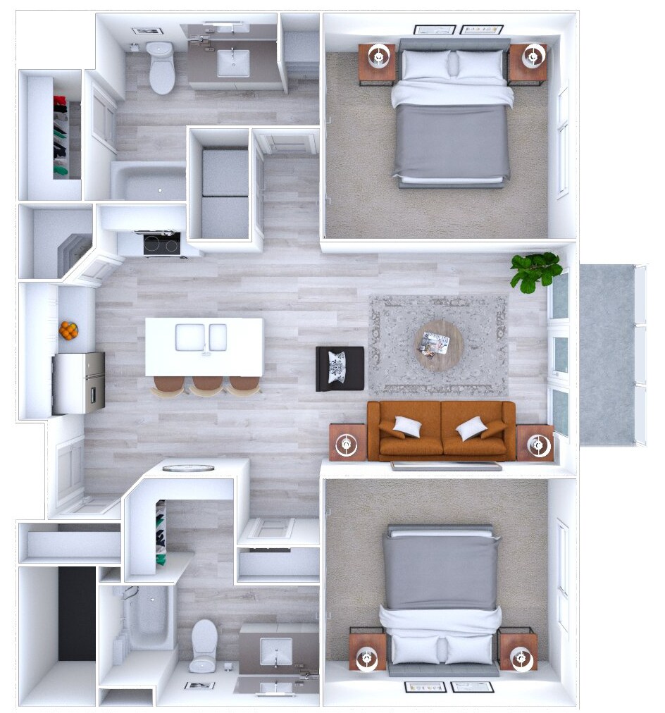 2 Beds, 2 Baths, 1128 sq ftAvailable NowModel Gallery