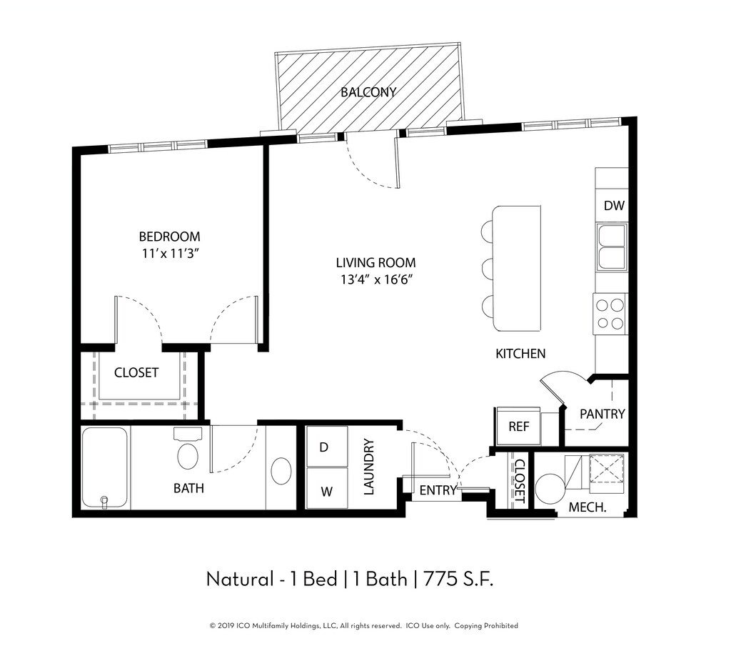 The Natural 1x1 - Floorplan 2 The Fierce 1x1