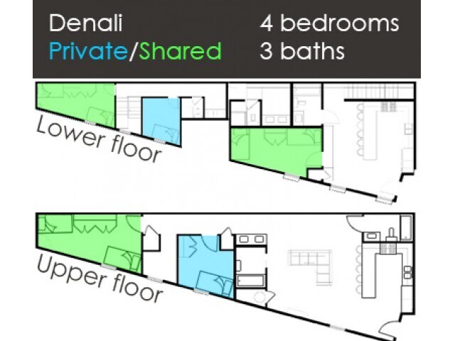 Apartment Model: Denali$6954 Bedroom, 3 Bath, 1614 sq ftAvailable August 20, 2026Denali - Floorplan 1 Apartment Unit: PrivateApartment Model: Denali$6954 Bedroom, 3 Bath, 1614 sq ftAvailable August 20, 20265 Bedrooms