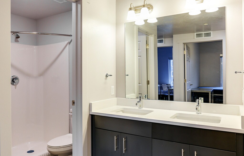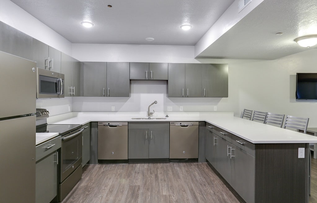 Welcome to The Factory Student Apartments in Logan, UT. We are a student housing community built for the students of USU and surrounding colleges. Our apartments offer spacious private and shared rooms with a washer and dryer, modern appliances, dishwashers, and two refrigerators in each unit. All covered by a flat rate utility fee of $75.00 that covers water, sewer, garbage, gas, electric, and internet! We place an emphasis on our amazing amenities and building community and connections between residents. We are ideally located only a couple minutes walk from campus, restaurants, entertainment, and more.
