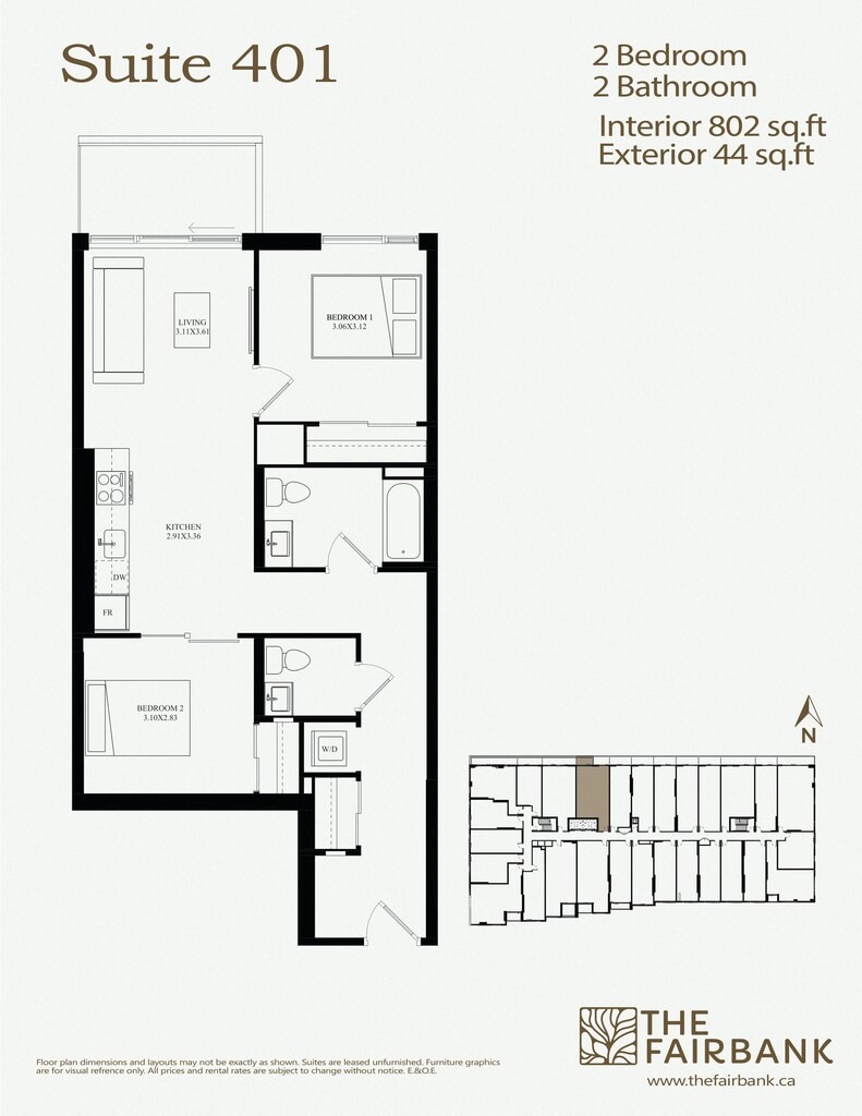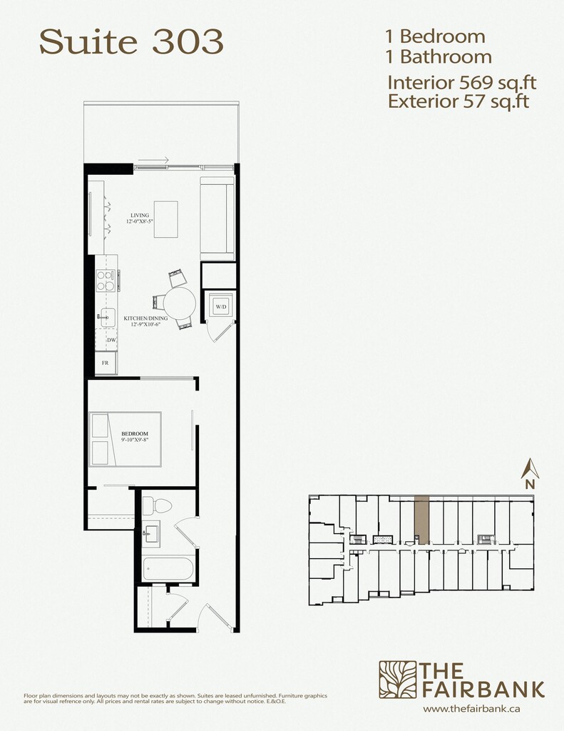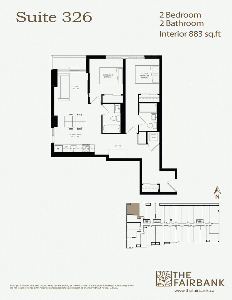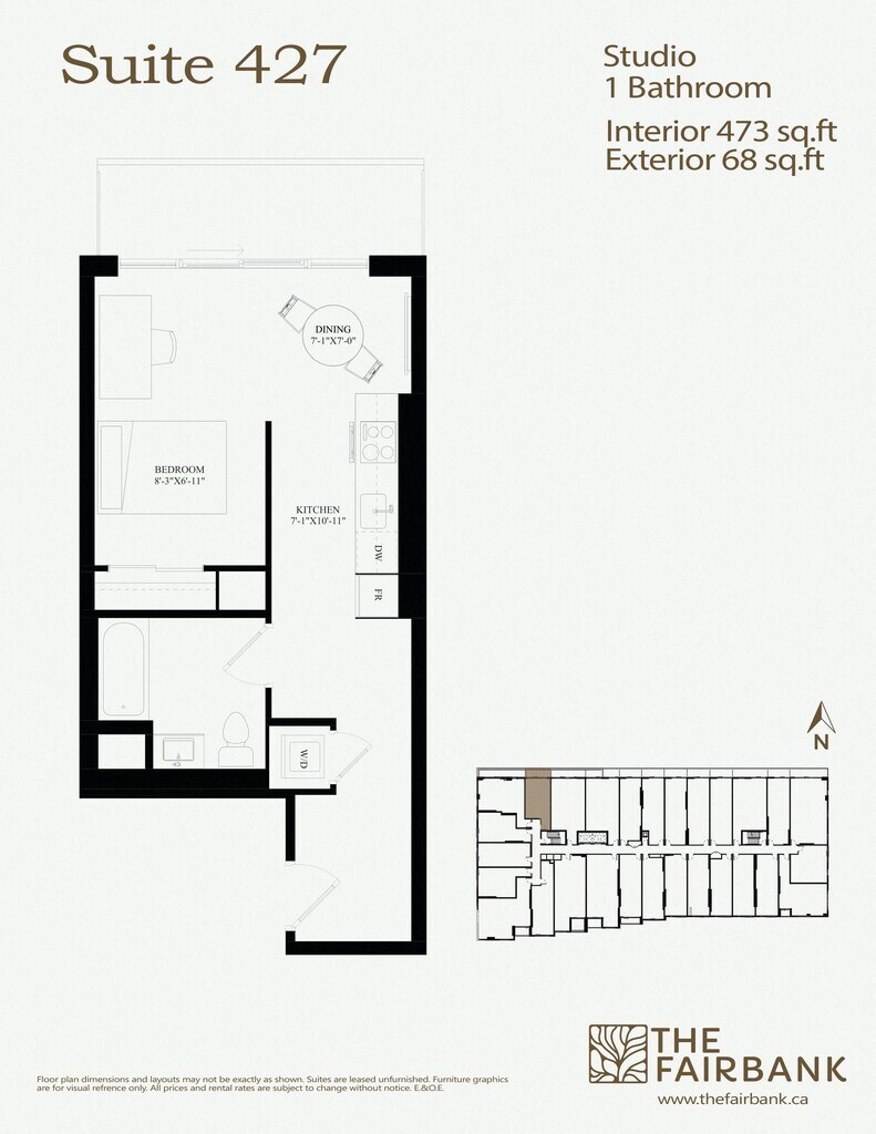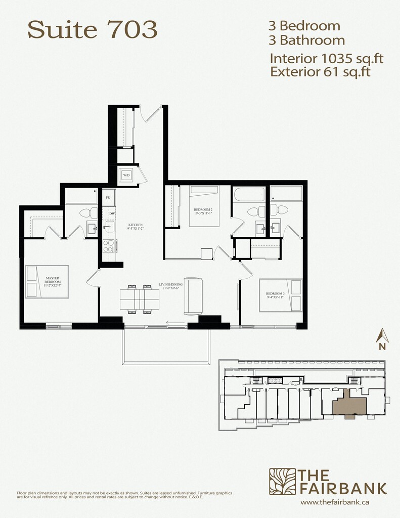 The Fairbank offers Studio to 3 Bedroom apartments starting from $1,999 and having 460–1,035 sq ft. Here is the current pricing and availability: