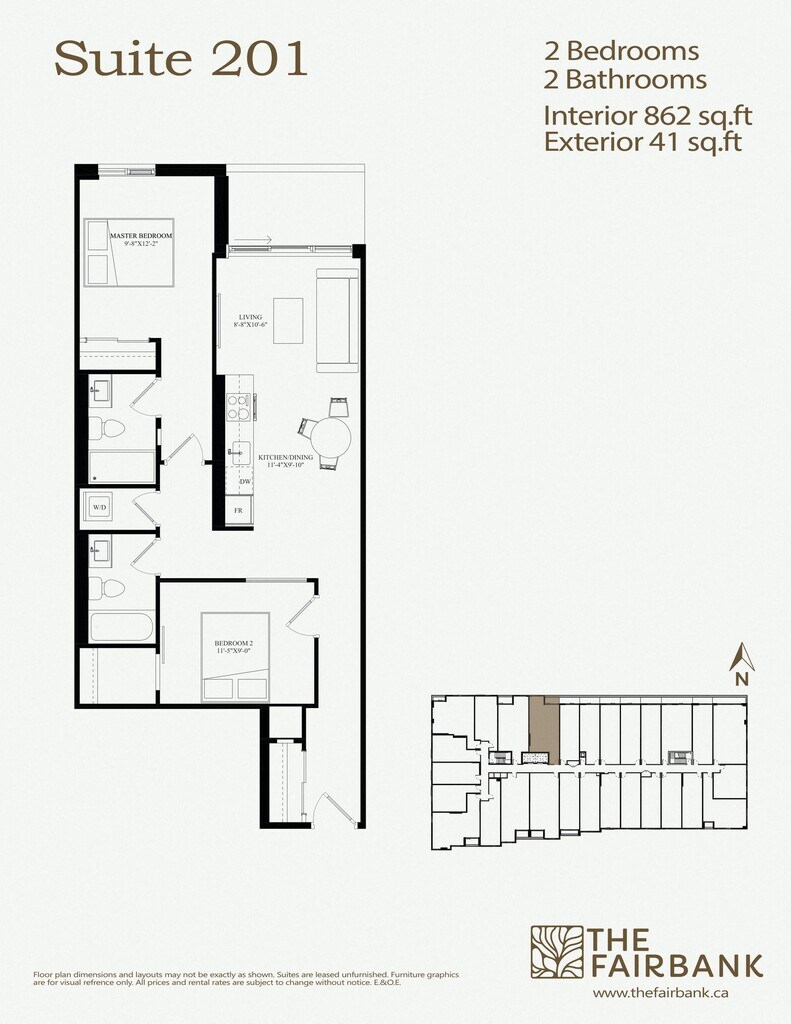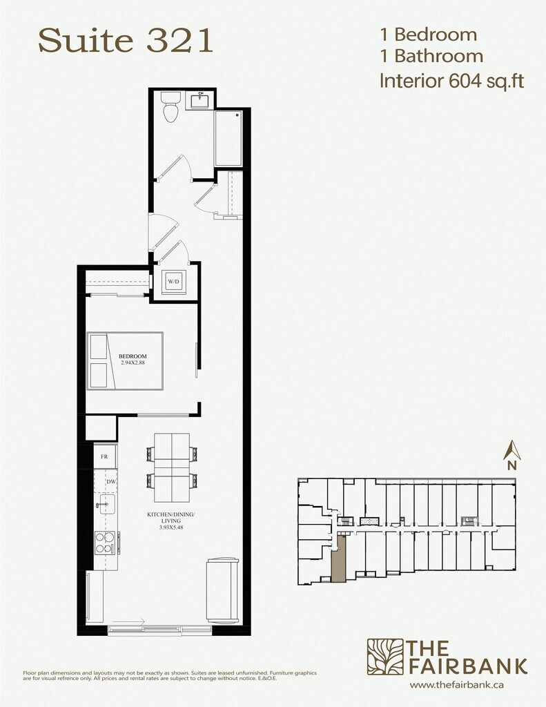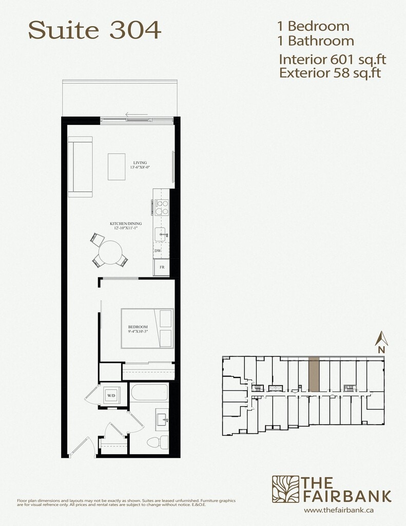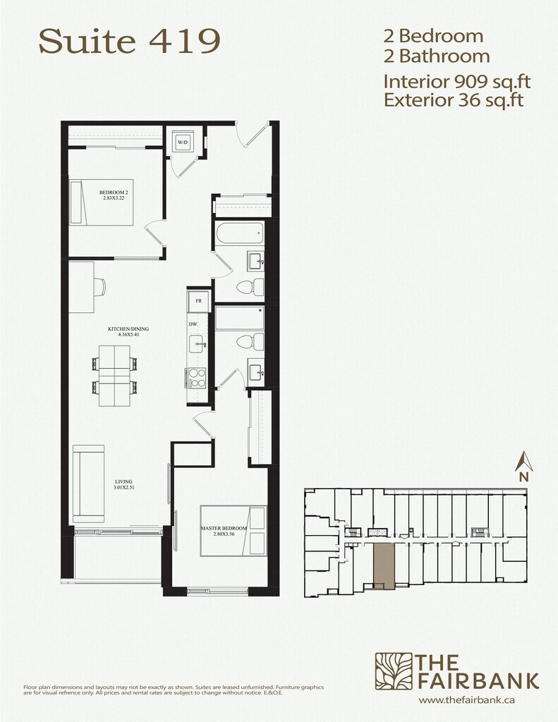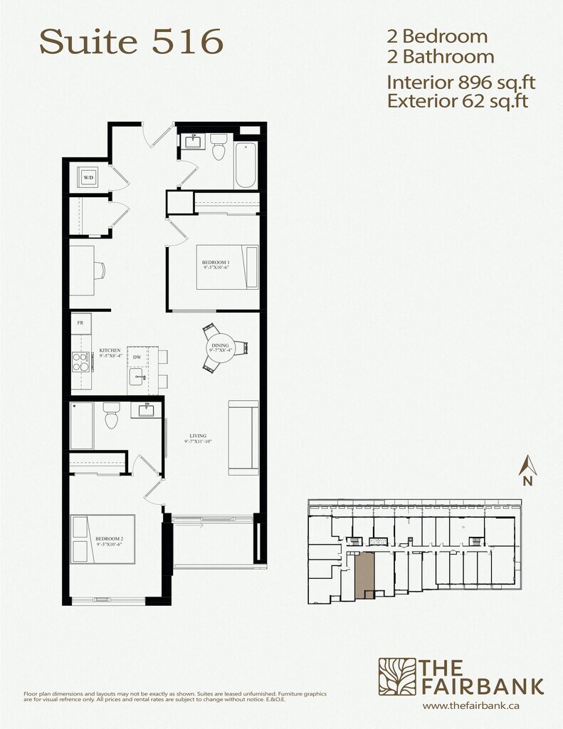 The Fairbank offers Studio to 3 Bedroom apartments starting from $1,999 and having 460–1,035 sq ft. Here is the current pricing and availability: