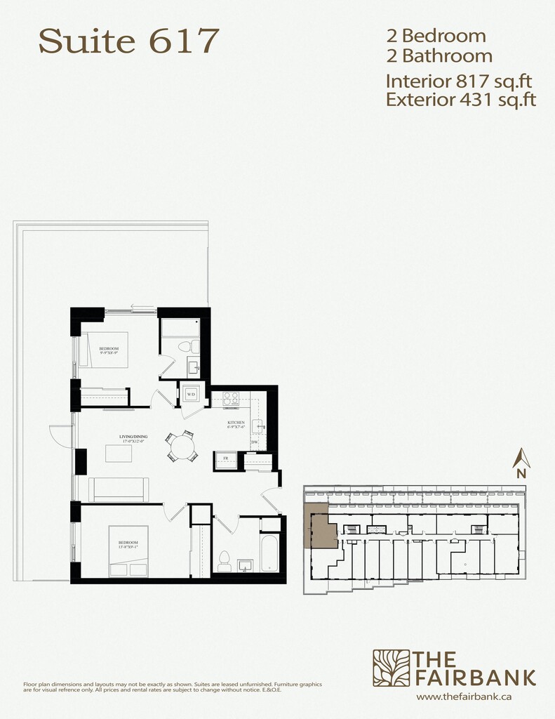 The current rent special at The Fairbank is: For a limited time, you can receive 1 MONTH FREE RENT when you sign a 14-month lease PLUS enjoy COMPLIMENTARY HIGH SPEED INTERNET FOR LIFE! Offer available to new applicants only. Offer subject to change and availability. E.&O.E. Additional terms, conditions and restrictions may apply..