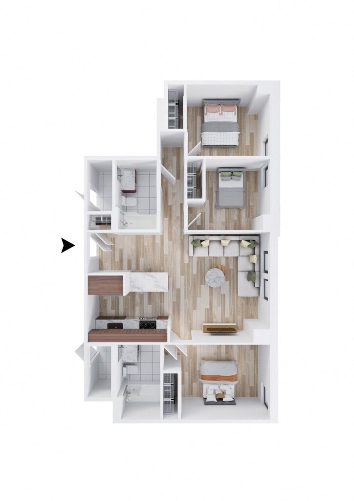 Apartment Model: 3 Bedroom 2 Bathroom$1,8663 Bedroom, 2 Bath, 955 sq ftAvailable Now![]()