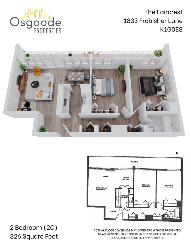 2 Bedroom C - Floorplan Apartment Unit: 0215Apartment Model: 2 Bedroom C2 Bedroom, 1 Bath, 826 sq ftAvailable July 1, 20262 Bedroom F