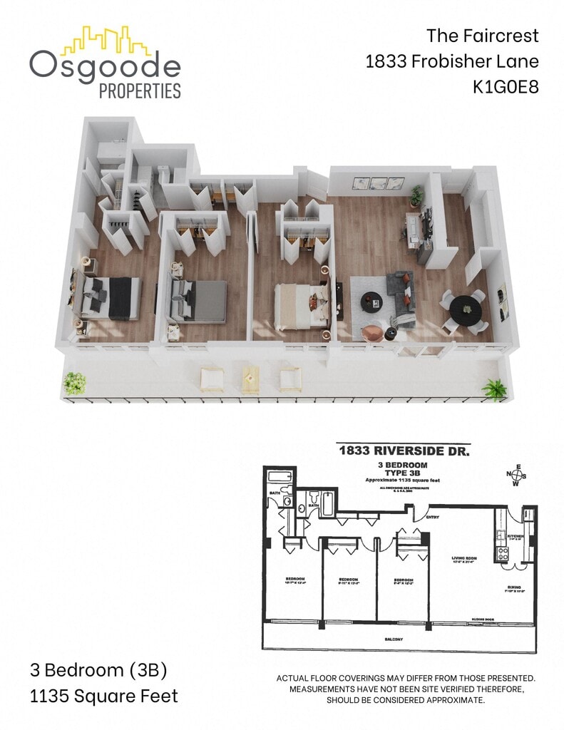 3 Bedroom A - Floorplan 1 Apartment Unit: 0107Apartment Model: 3 Bedroom A$2,5443 Bedroom, 2 Bath, 1135 sq ftAvailable February 1, 2026