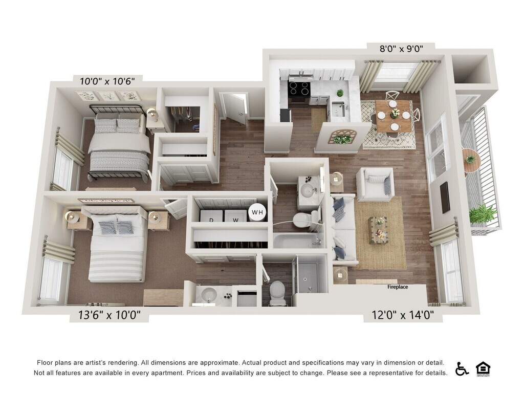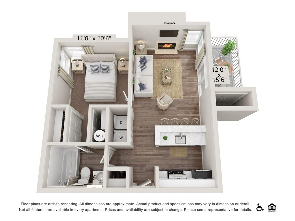 1 Bed, 1 Bath, 632 sq ftModel Gallery
