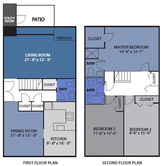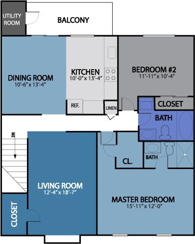 Two Bedroom 2.5 Ba Oakmont - Floorplan 1 ![]()