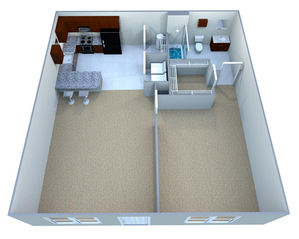 1 Bed, 1 Bath, 544 sq ftModel Gallery