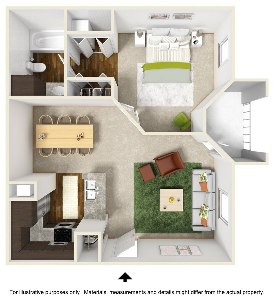 Apartment Model: Paradise Falls1 Bedroom, 1 Bath, 564 sq ftAvailable Now![]()