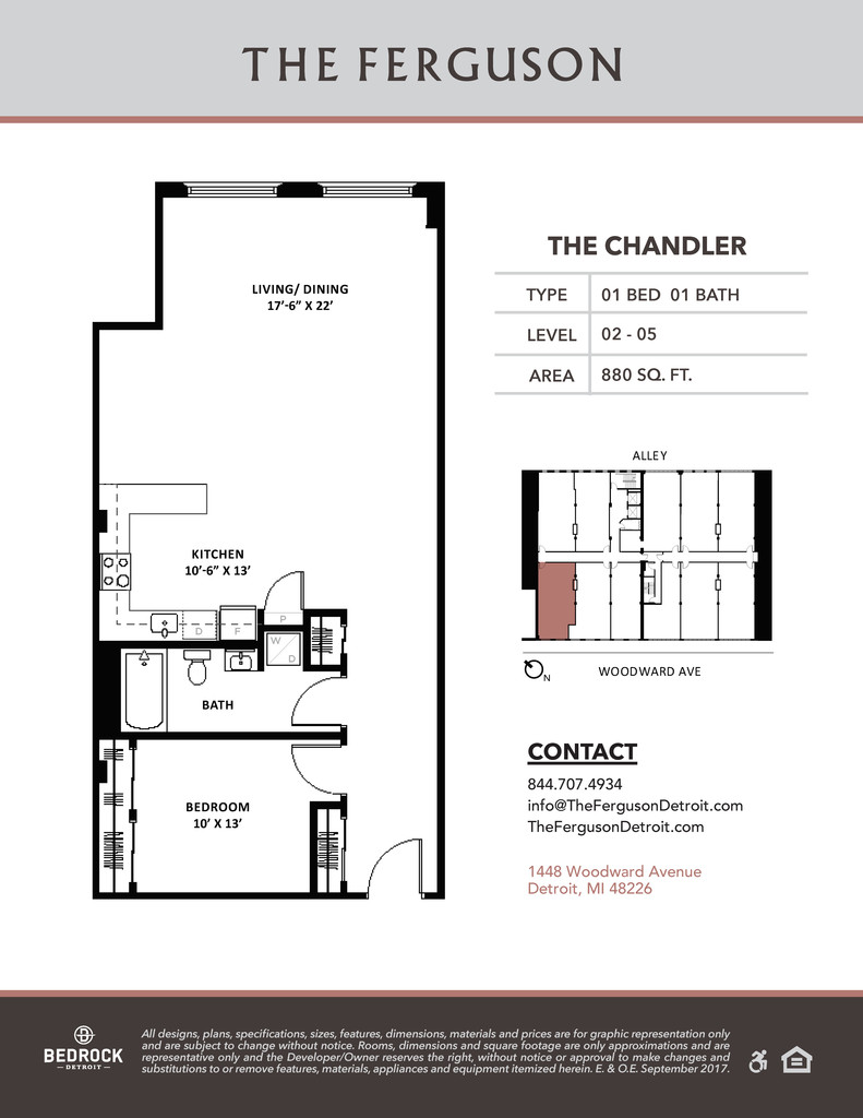 The Ferguson is located in the District Detroit Neighborhood and 48226 Zip code of Detroit, MI. This community is professionally managed by Bedrock Management Services LLC