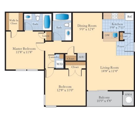 2 Beds, 2 Baths, 1010 sq ftLargest 2 BedroomThis is the largest 2 Bedroom at this PropertyModel Gallery