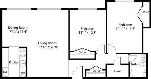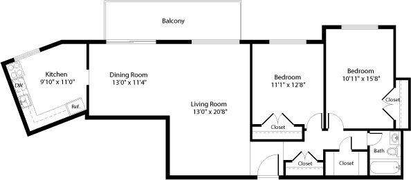 2 Beds, 1 Bath, 1051 sq ftLargest 2 BedroomThis is the largest 2 Bedroom at this PropertyModel Gallery
