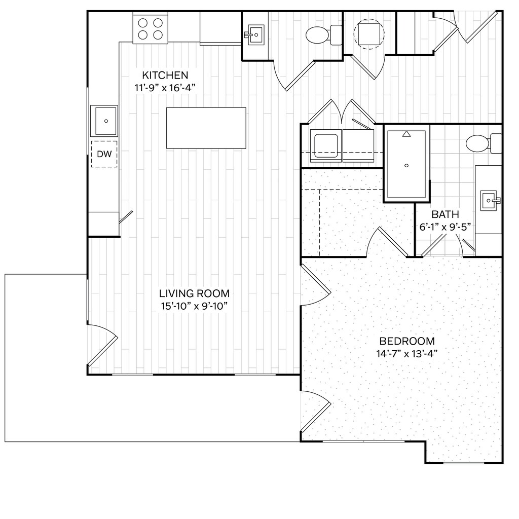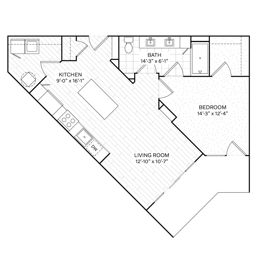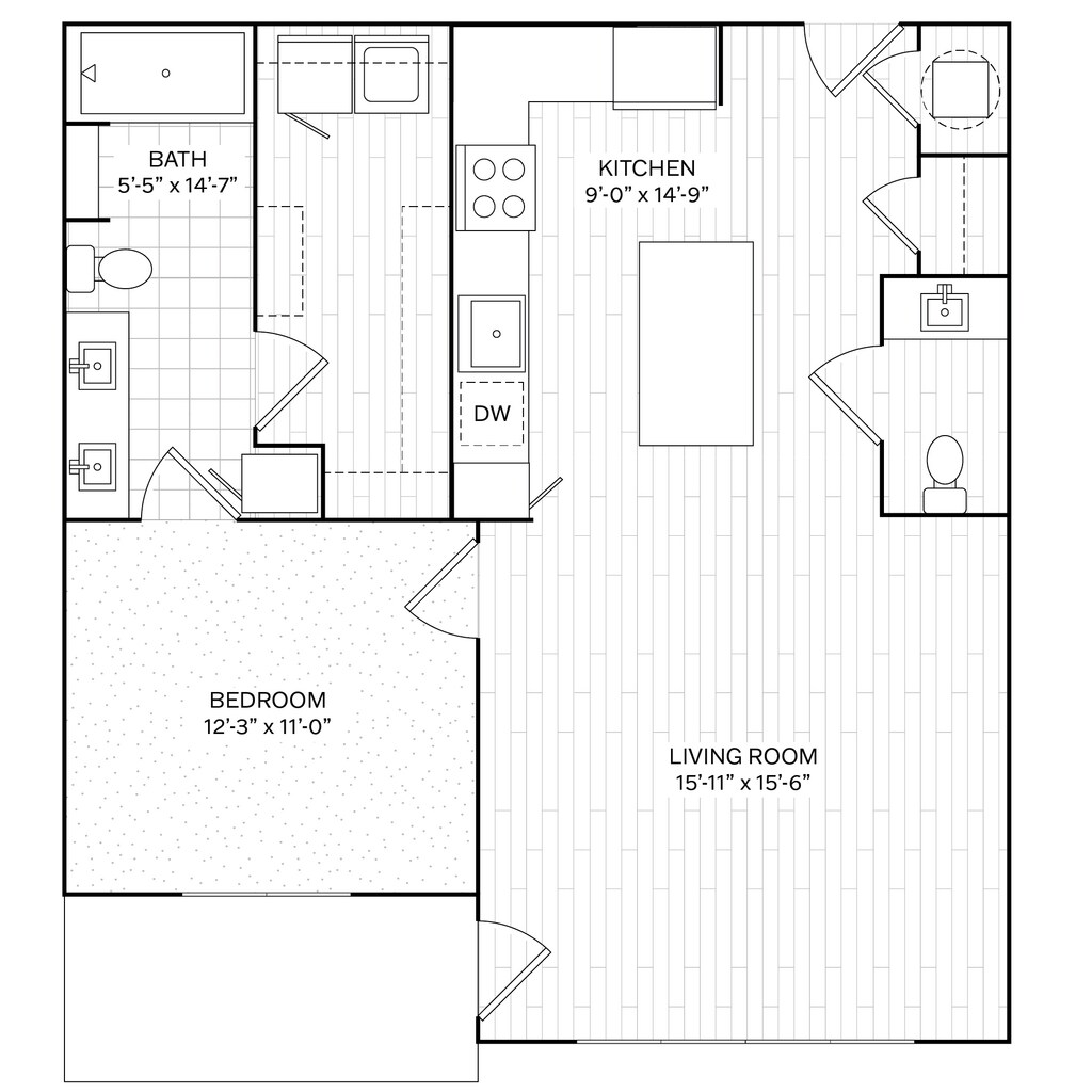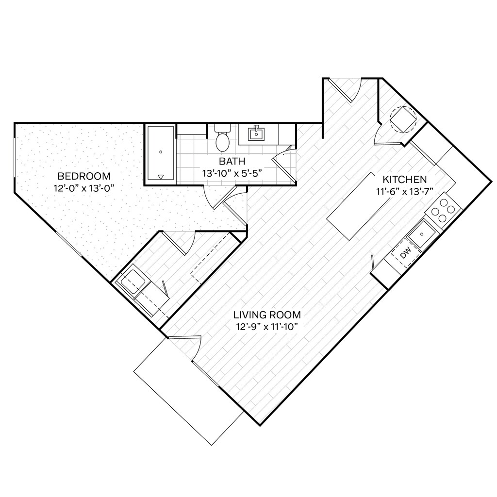 Apartment Model: A2From $1,6701 Bedroom, 1 Bath, 727 sq ftAvailable NowFloor plans are artist's rendering. All dimensions are approximate. Actual product and specifications may vary in dimension or detail. Not all features are available in every rental home. Prices and availability are subject to change. Base rent is based on monthly frequency. Additional fees may apply, such as but not limited to package delivery, trash, water, amenities, etc. Deposits vary. Please see a representative for details.