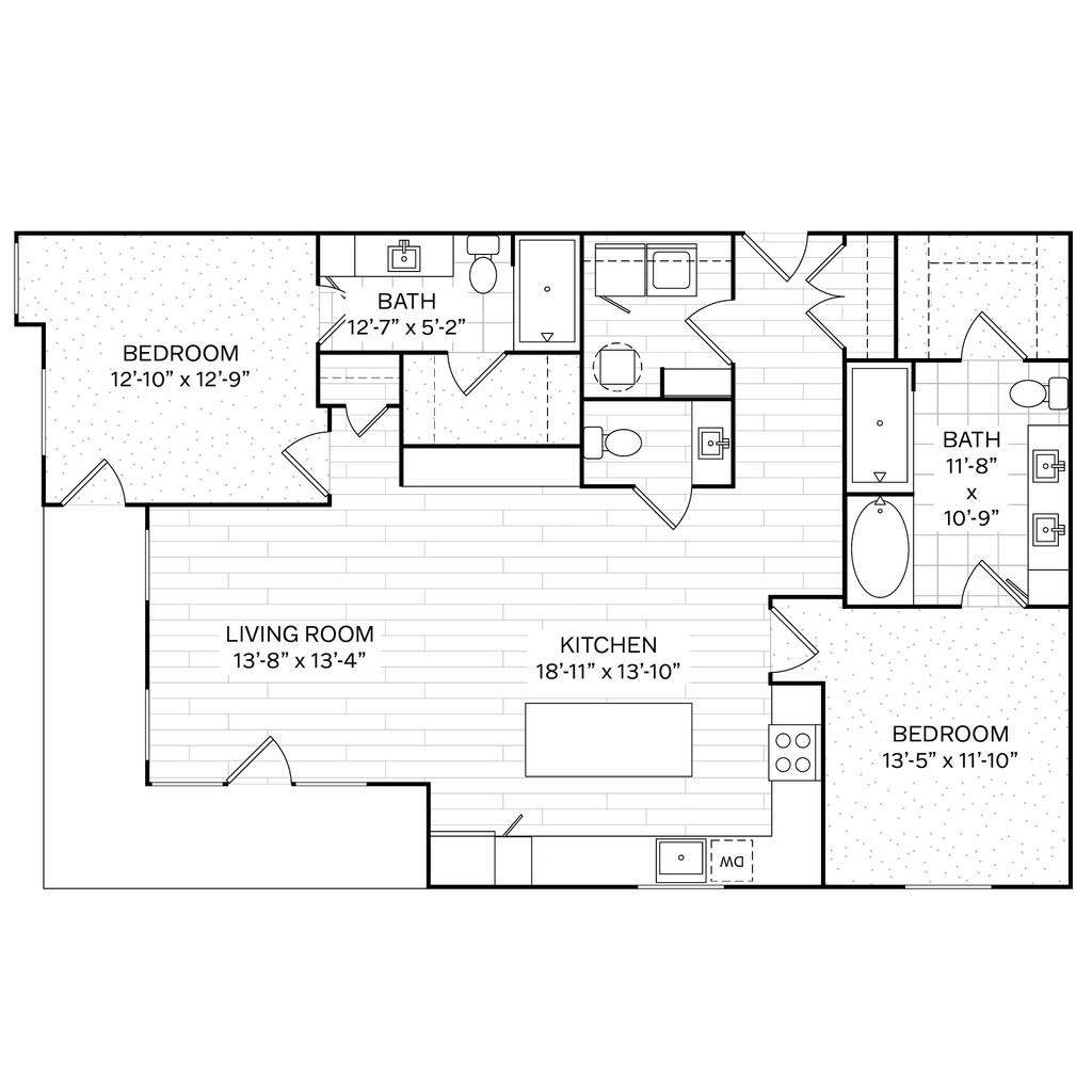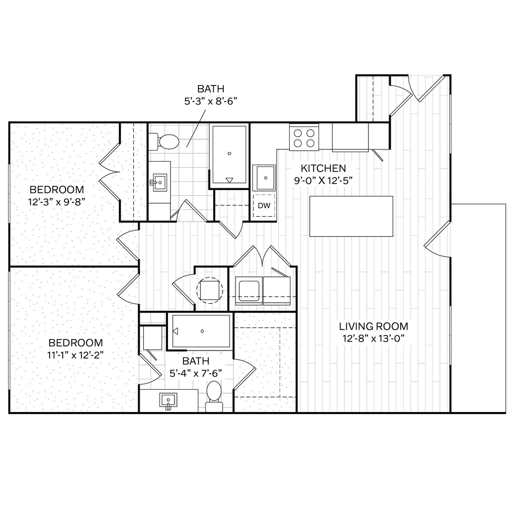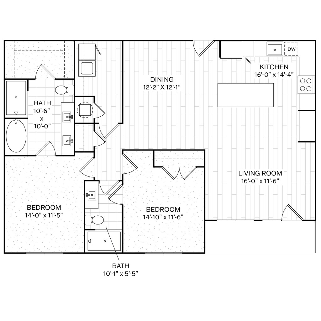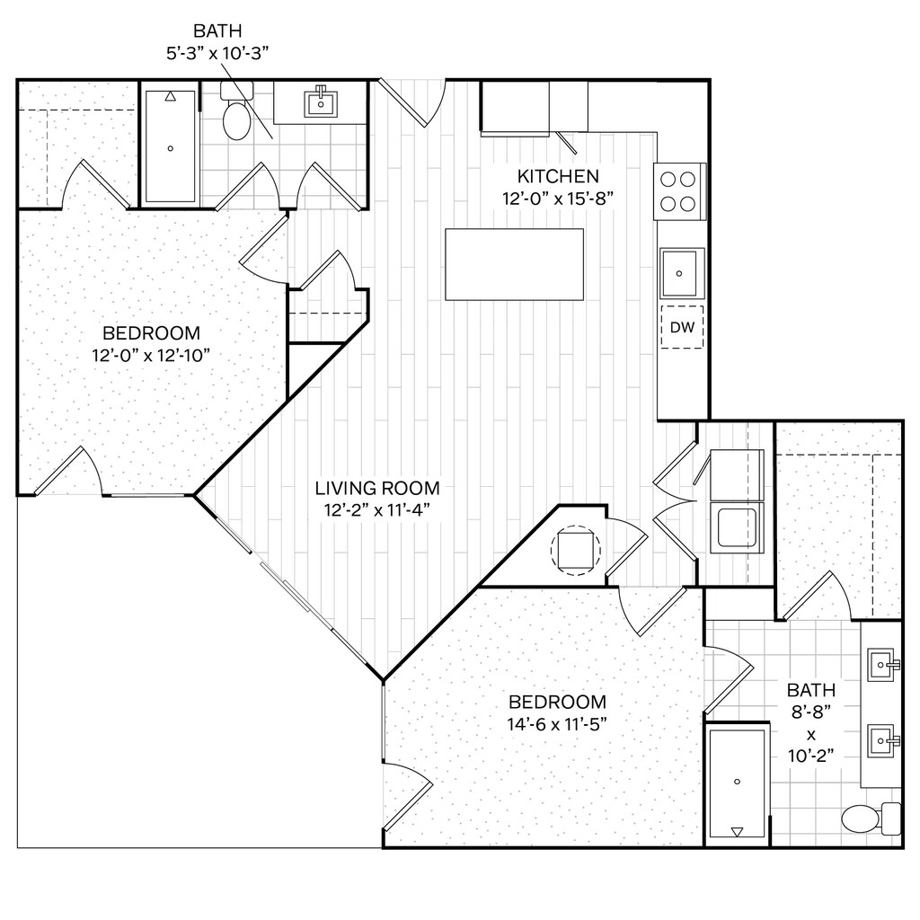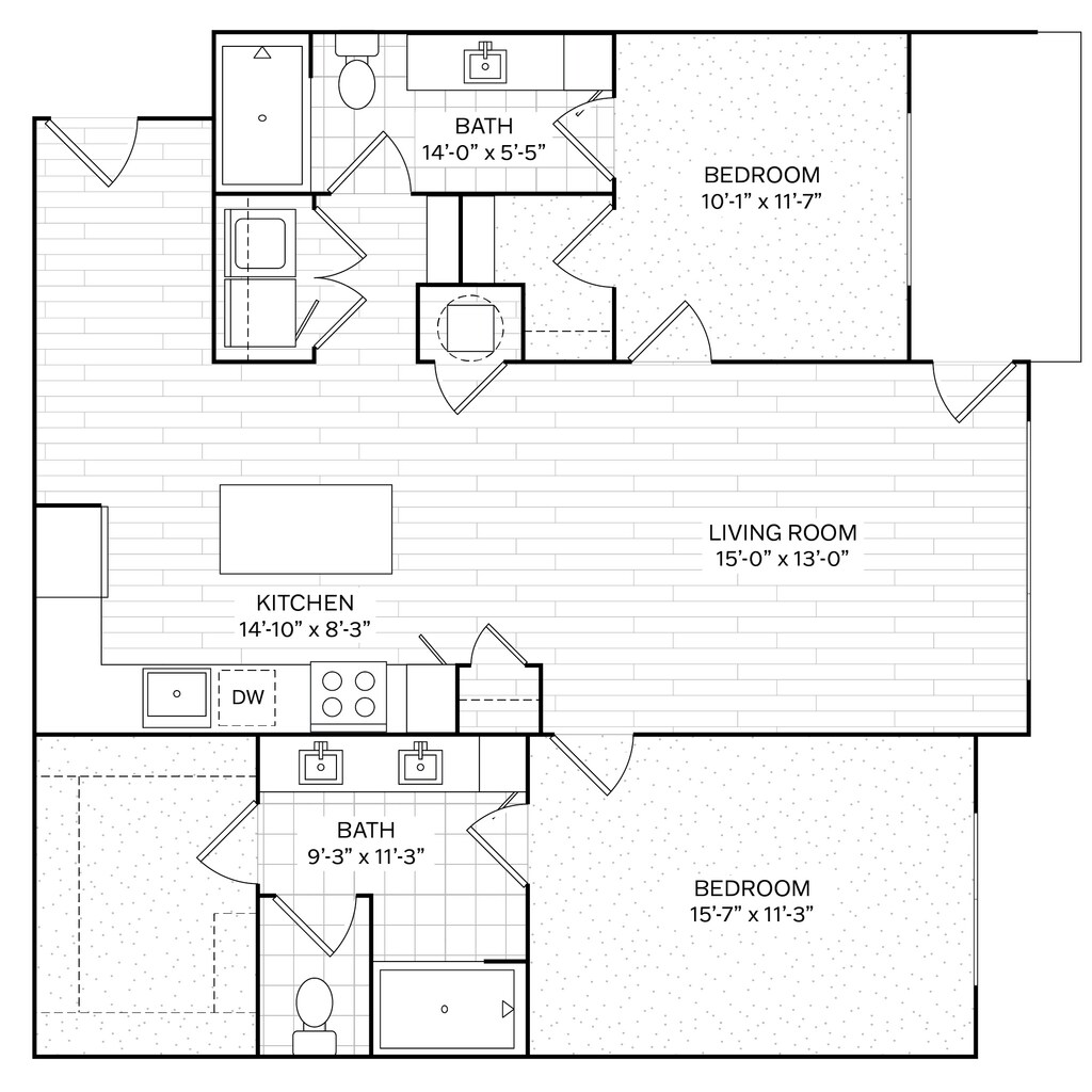 Apartment Model: A2From $1,6701 Bedroom, 1 Bath, 727 sq ftAvailable NowFloor plans are artist's rendering. All dimensions are approximate. Actual product and specifications may vary in dimension or detail. Not all features are available in every rental home. Prices and availability are subject to change. Base rent is based on monthly frequency. Additional fees may apply, such as but not limited to package delivery, trash, water, amenities, etc. Deposits vary. Please see a representative for details.