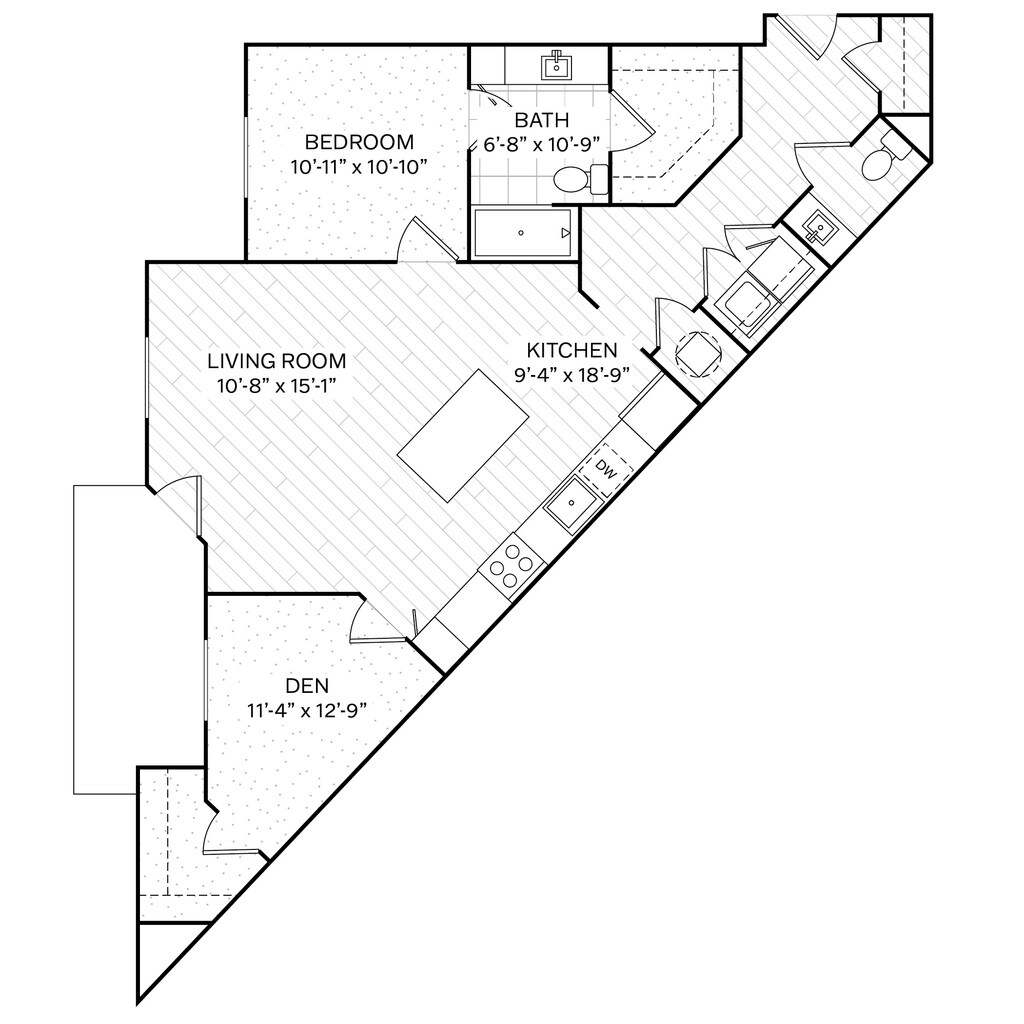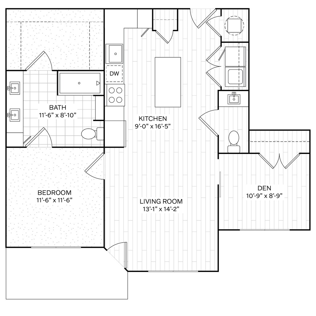 Apartment Model: A1From $1,6201 Bedroom, 1 Bath, 673 sq ftAvailable NowFloor plans are artist's rendering. All dimensions are approximate. Actual product and specifications may vary in dimension or detail. Not all features are available in every rental home. Prices and availability are subject to change. Base rent is based on monthly frequency. Additional fees may apply, such as but not limited to package delivery, trash, water, amenities, etc. Deposits vary. Please see a representative for details.